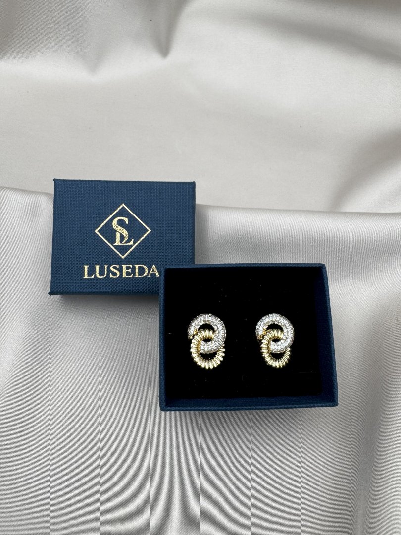 Zarafeti ve modernliği bir arada sunan bu spiral tasarım küpeler, LUSEDA’nın özel koleksiyonunun göz alıcı parçalarındandır. Altın kaplama kararmaz çelikten üretilen küpe, taşlı detaylarıyla ışıltılı bir duruş sergilerken spiral formuyla sofistike bir hava katıyor. Günlük kombinlerden özel davetlere kadar her stile uyum sağlayan bu küpeler, hafif yapısıyla gün boyu konforlu kullanım imkânı sunar. Şıklığınıza lüks bir dokunuş katmak için ideal bir seçimdir.