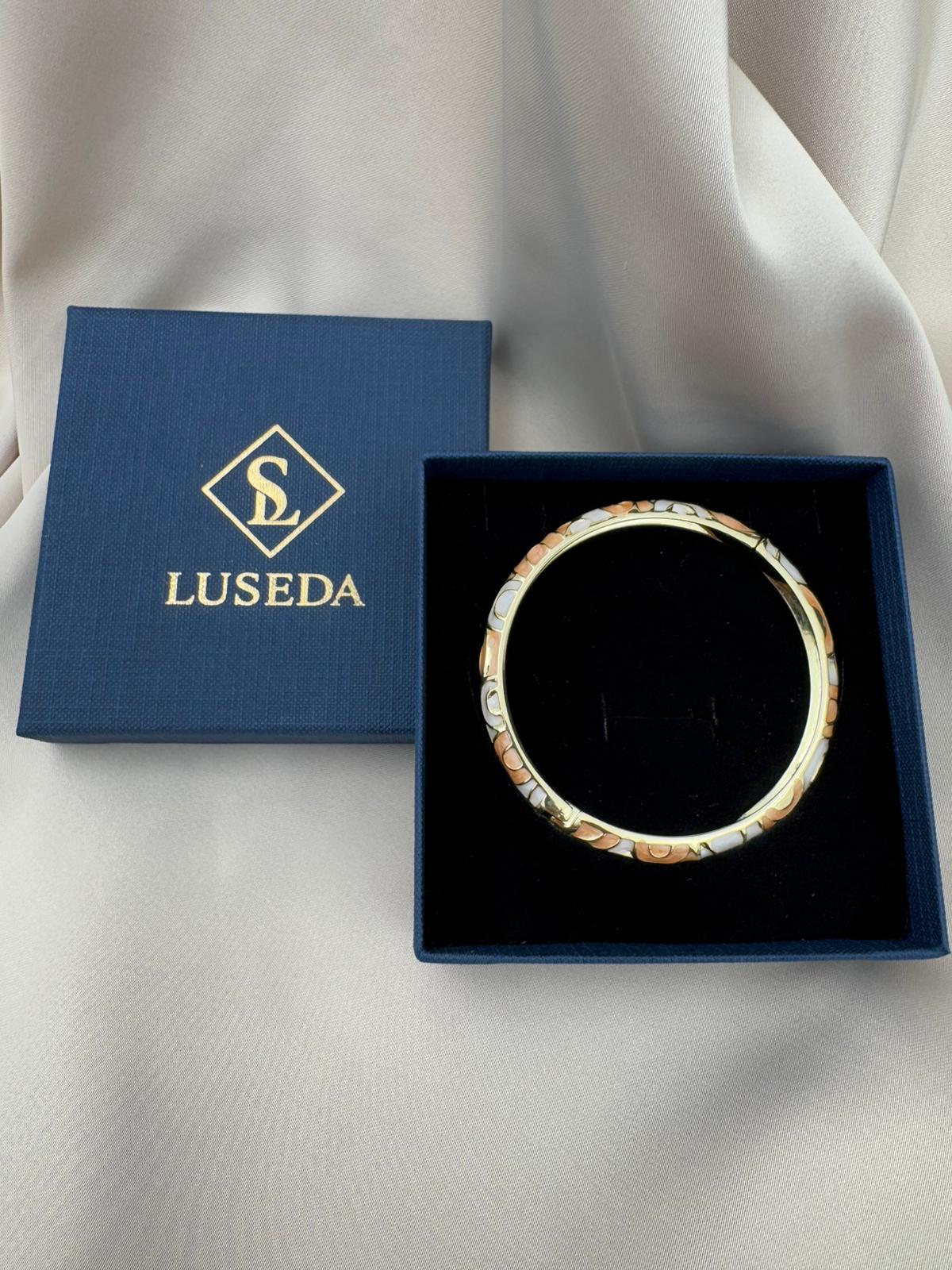 Zarif ve modern tasarımıyla dikkat çeken bu emaye desenli çelik bileklik, altın ve beyazın uyumlu birleşimiyle stilinizi ön plana çıkarıyor. Kararmaz çelik malzemesi sayesinde uzun yıllar parlaklığını korurken, özel emaye işçiliği ile farklı ve estetik bir görünüm sunar. Günlük kombinlerinize sofistike bir dokunuş katabileceği gibi, özel günlerde de şıklığınızı tamamlayacak ideal bir aksesuardır. Hem kendiniz hem de sevdikleriniz için zarif bir hediye alternatifi olarak öne çıkar.