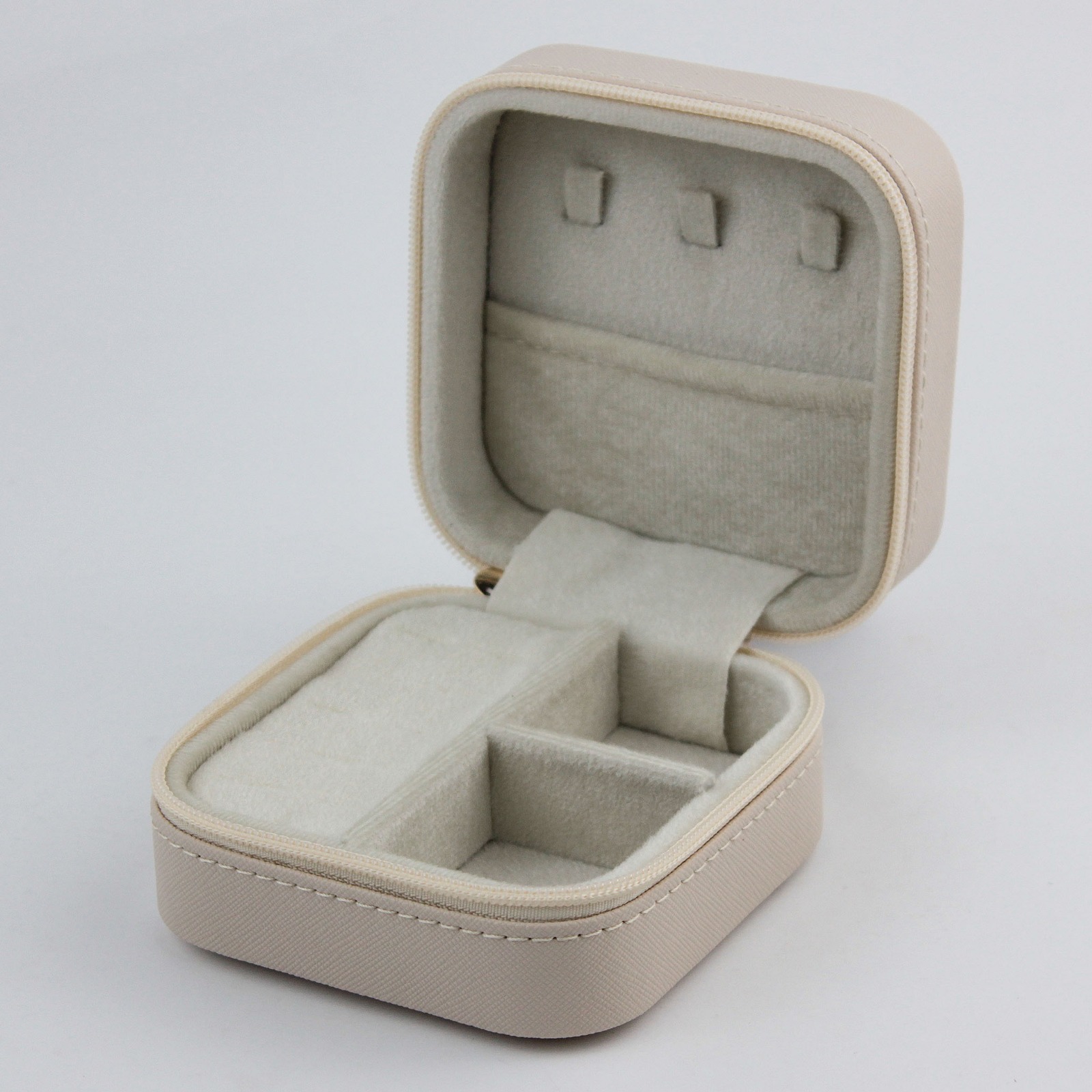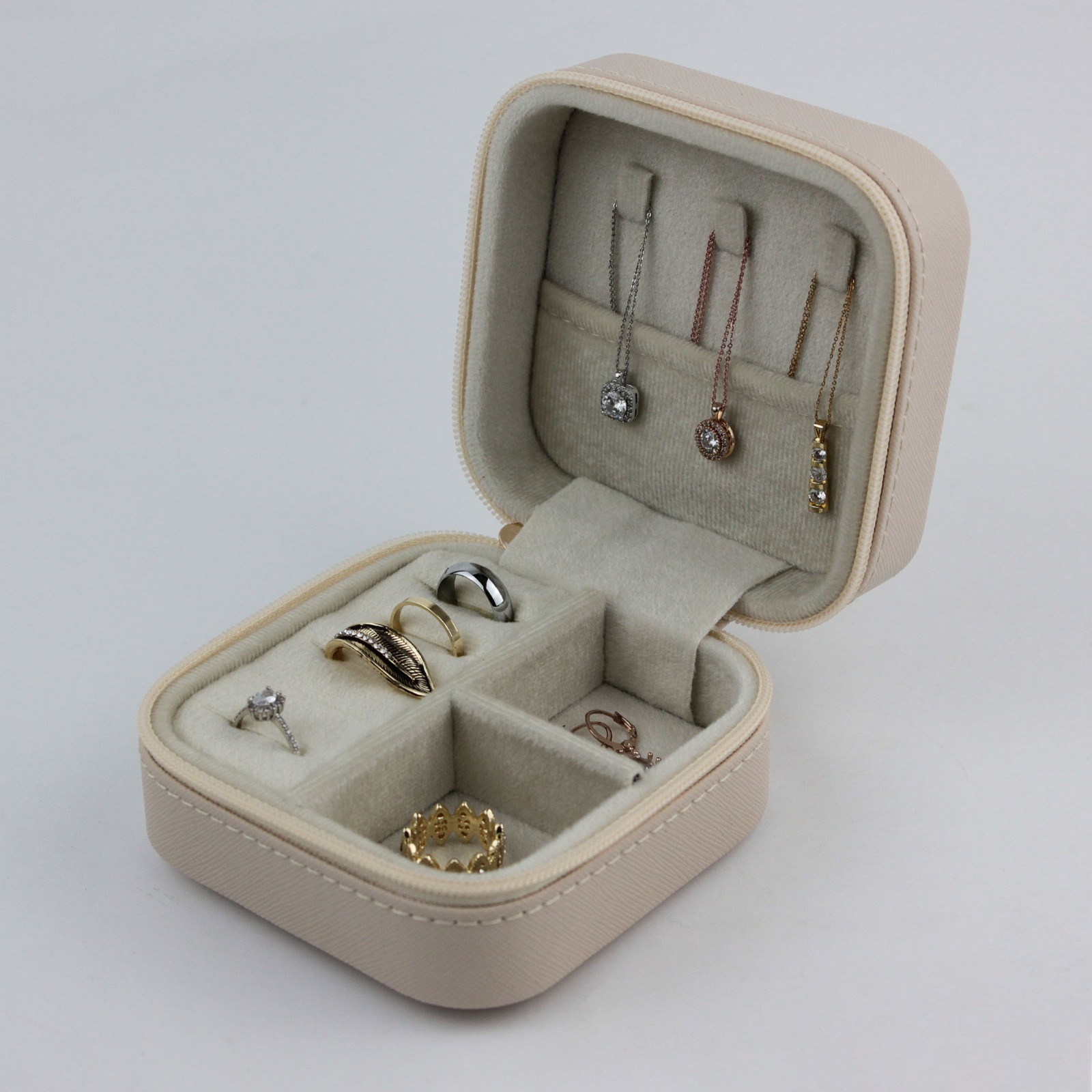 LUSEDA’nın zarif bej tonuyla tasarladığı bu mini takı kutusu, şıklığı ve işlevselliği bir arada sunar. Kadife iç kaplaması sayesinde yüzük, kolye, küpe ve bilekliklerinizi çizilmeden, karışmadan ve güvenle muhafaza etmenizi sağlar. Kompakt boyutu ve hafif yapısı sayesinde seyahatlerde kolayca taşınabilir; fermuarlı tasarımı takılarınızın daima güvende kalmasını sağlar.