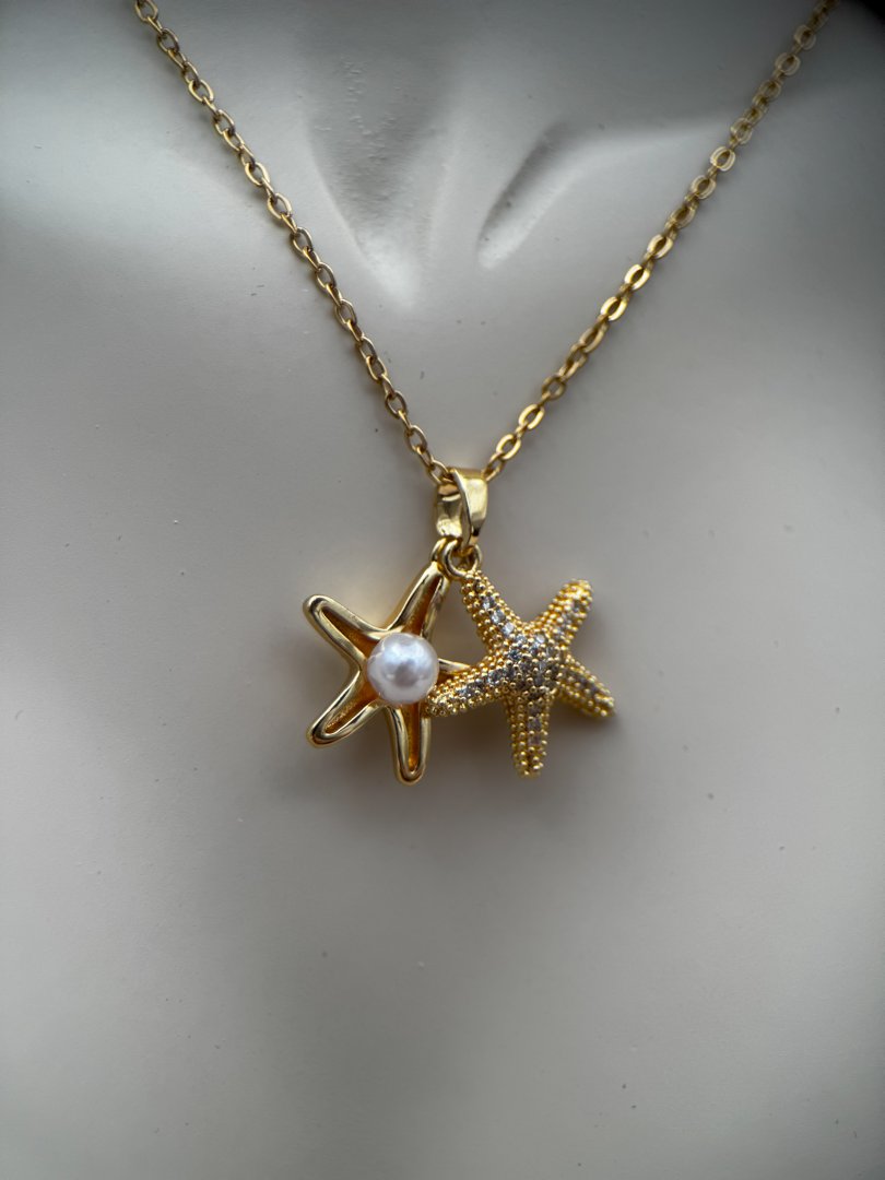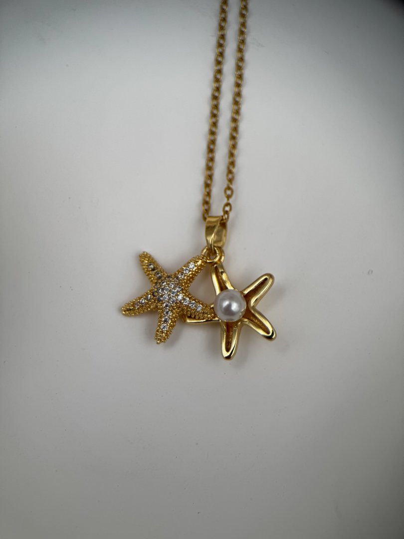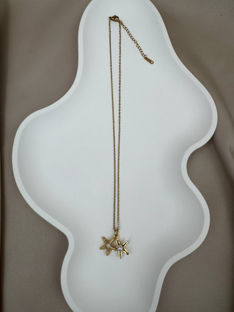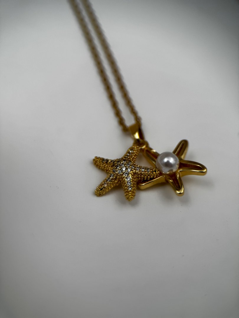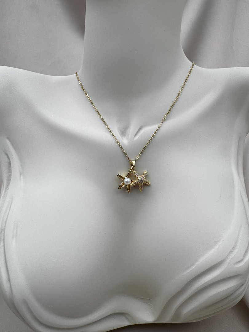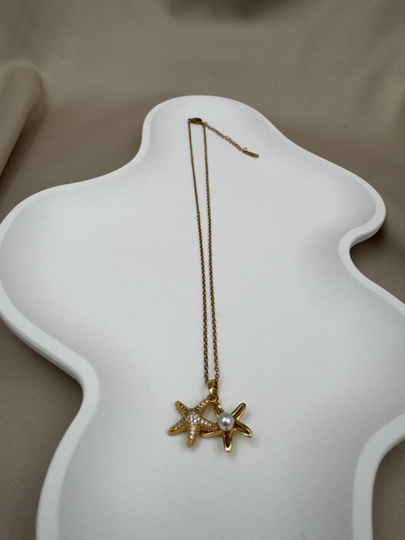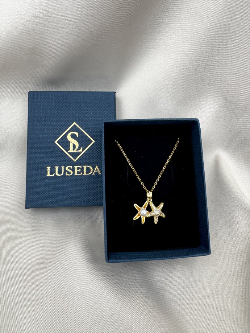 LUSEDA’nın denizden ilham alan İkili Deniz Yıldızı Kolyesi, modern zarafeti ve şıklığı bir arada sunar. Biri zirkon taşlarla parıldayan, diğeri inci detayıyla zenginleştirilen iki farklı deniz yıldızı formu, kolyeye eşsiz bir estetik katar. Altın kaplama zinciriyle günlük kombinlerde olduğu kadar özel davetlerde de göz alıcı bir tamamlayıcıdır. Kararmayan, kaliteli çelik yapısı sayesinde uzun süreli kullanıma uygundur. Denizin huzurunu ve doğanın zarafetini boynunuzda taşımak isteyenler için şık ve anlamlı bir seçenektir.