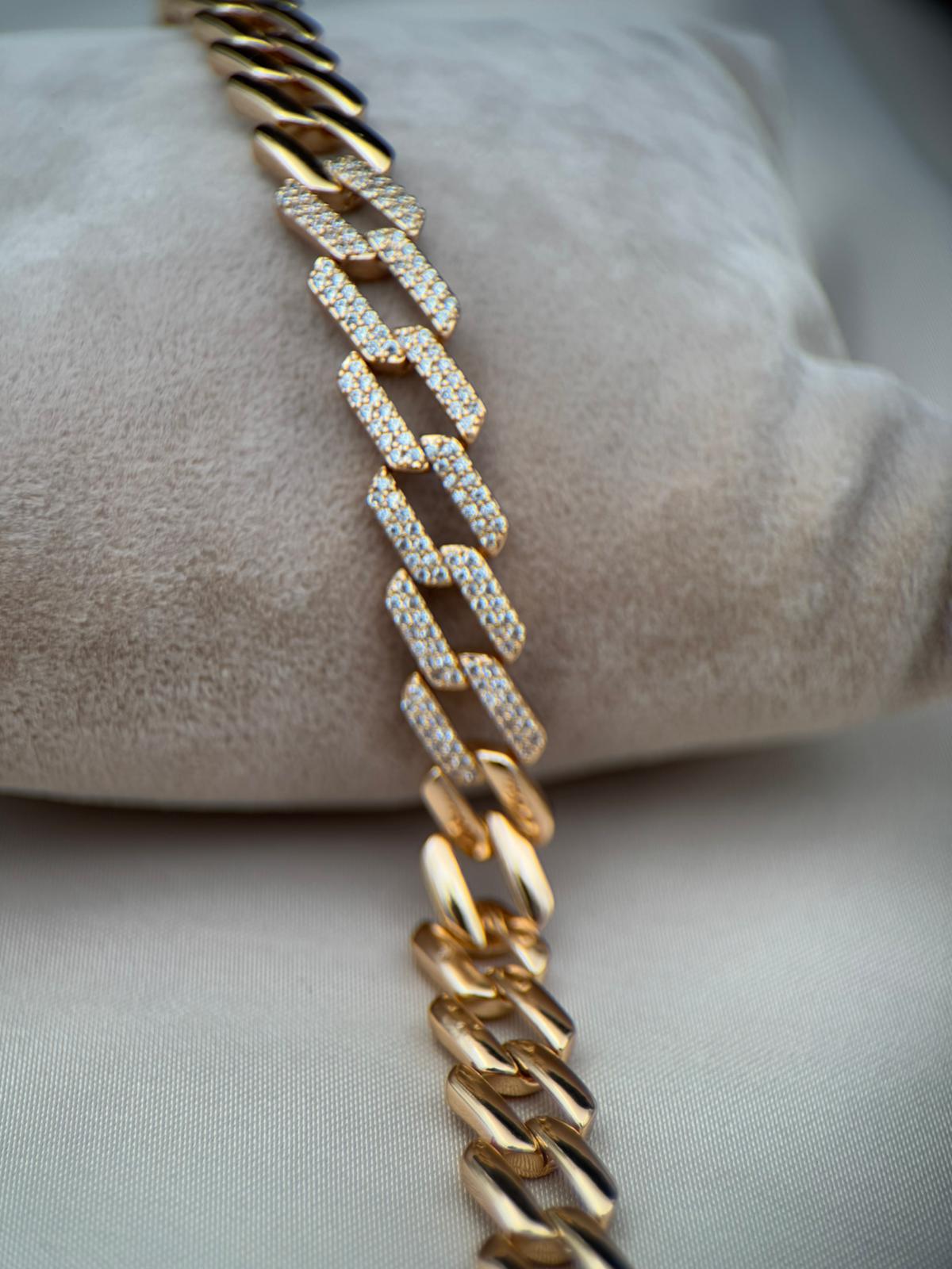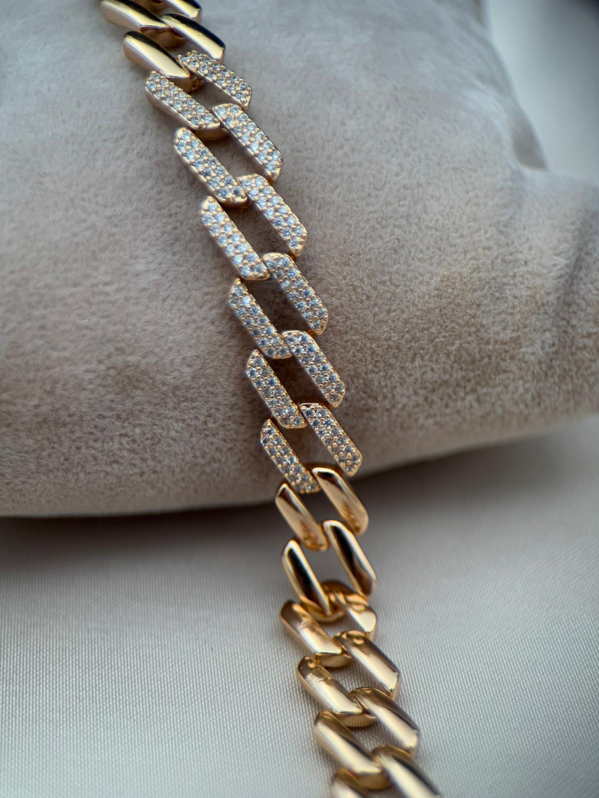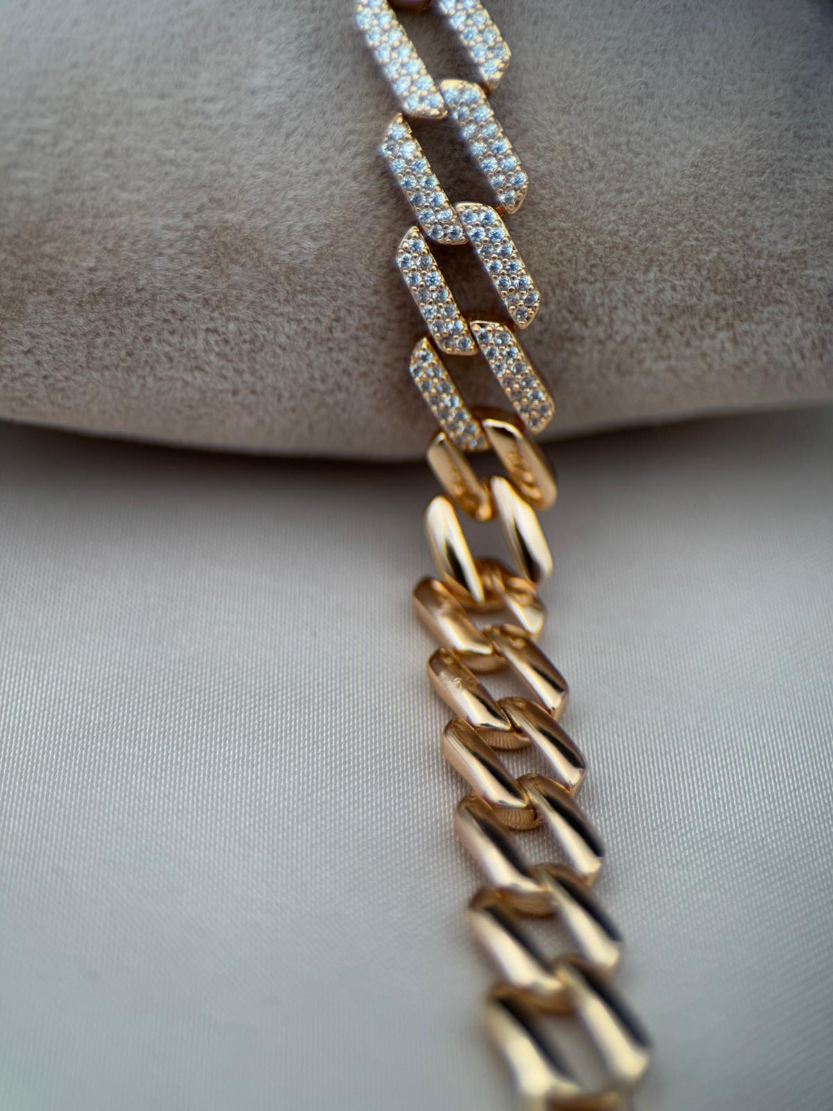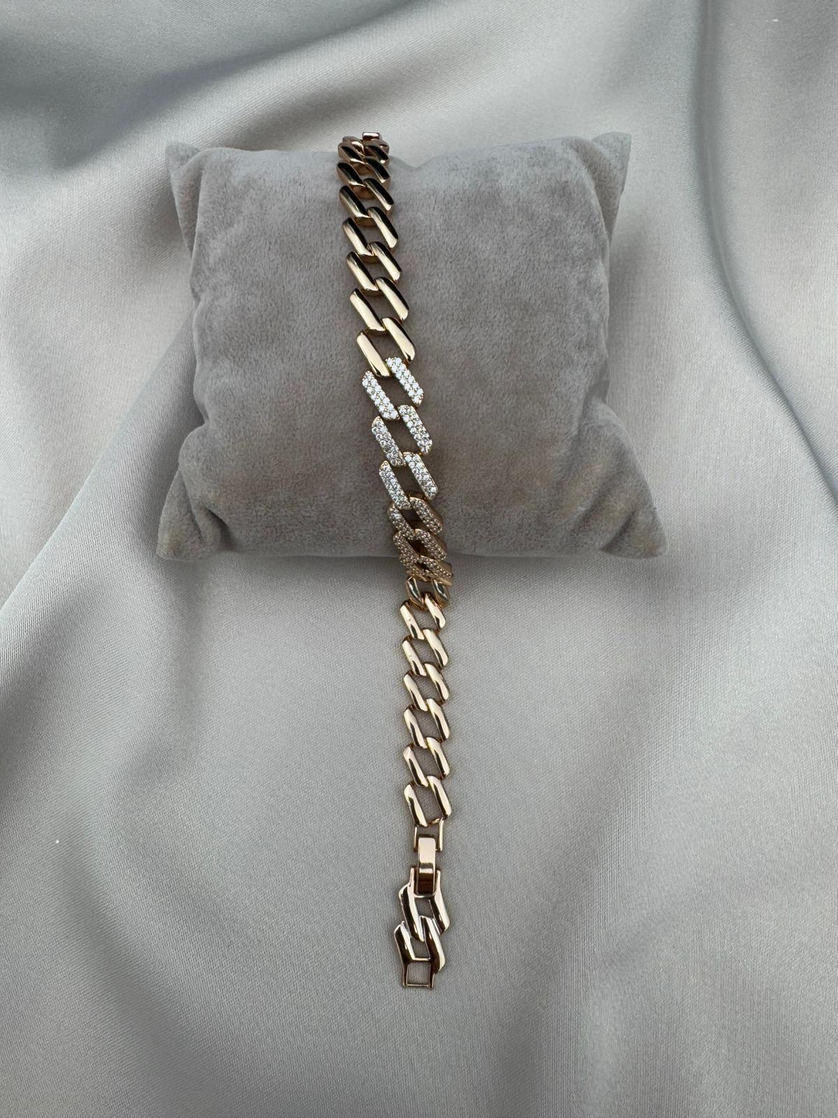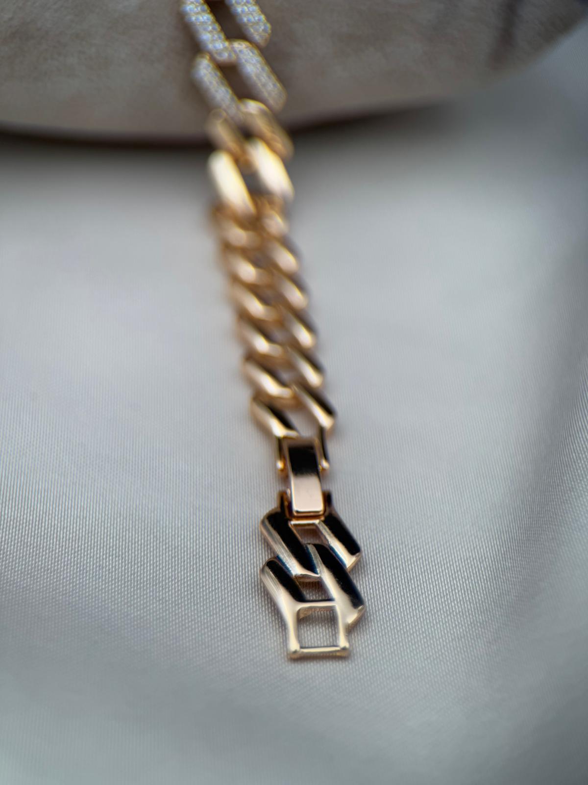 LUSEDA’nın özel tasarımı olan bu çelik kararmaz bileklik, gold kaplaması ve pırlanta ışıltılı taş detaylarıyla modern şıklığı bileğinizle buluşturuyor.