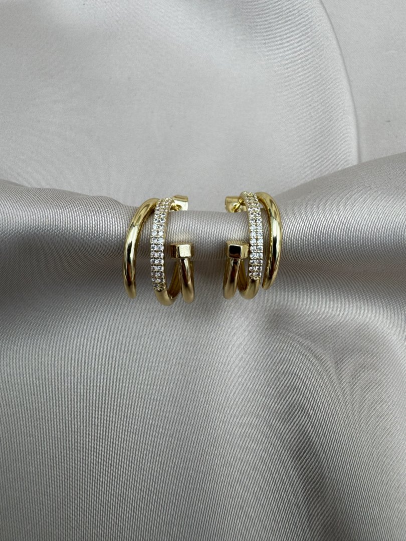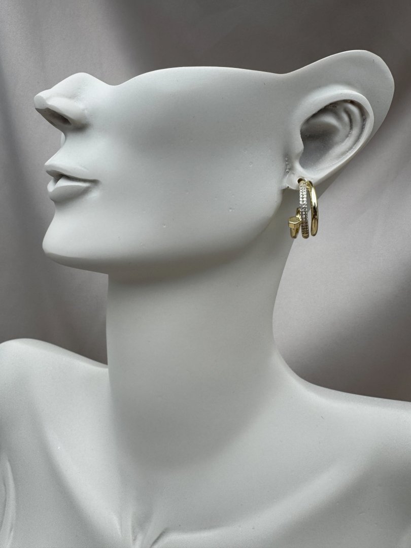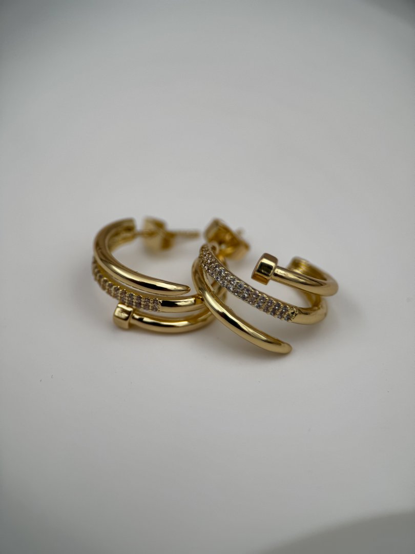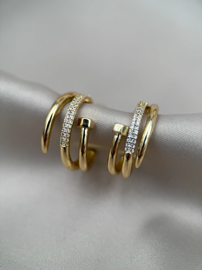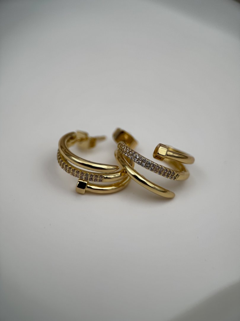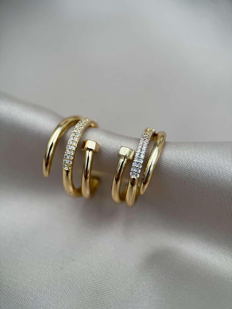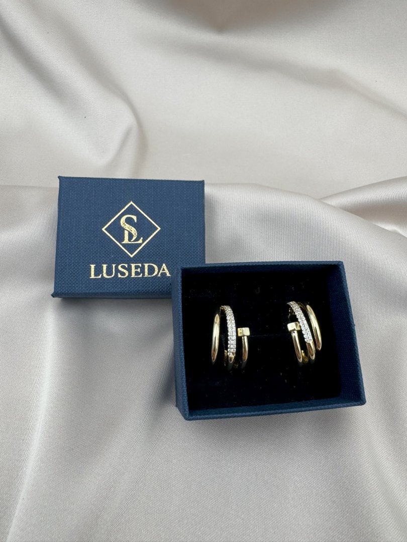 LUSEDA’nın çivili çift halkalı taşlı gold küpesi, modern tasarımı ve zarif detaylarıyla göz alıcı bir şıklık sunuyor. Parlak zirkon taşlarla işlenen bu özel model, kararmaz çelik yapısı sayesinde uzun süre parlaklığını korurken, hipoalerjenik özelliğiyle cildinizde güvenle kullanılabilir. Günlük kombinlerden özel davetlere kadar her ortamda stilinize sofistike bir dokunuş katacak bu küpe, hem dayanıklılığı hem de lüks görünümüyle vazgeçilmez aksesuarlarınız arasında yer alacak.