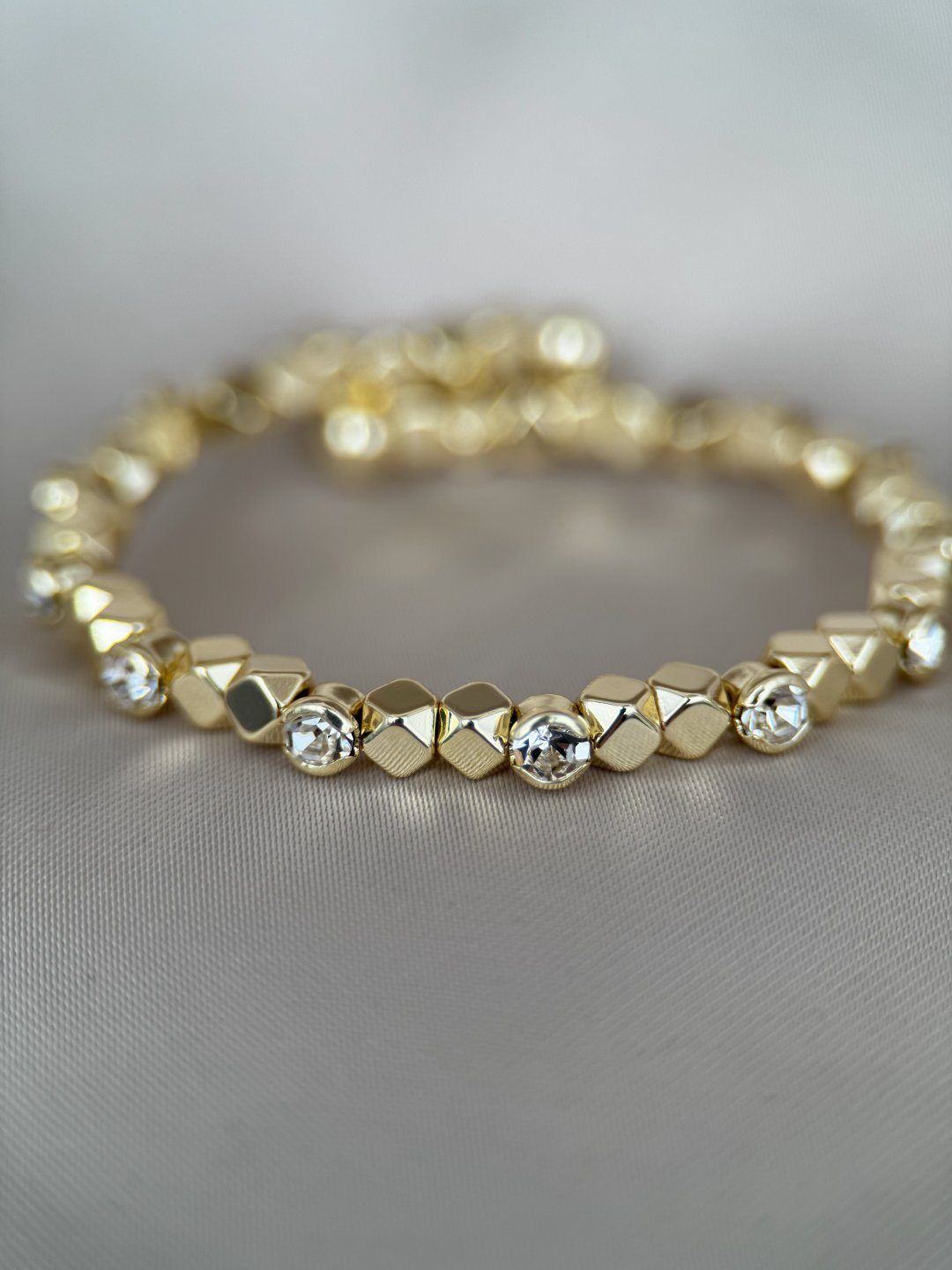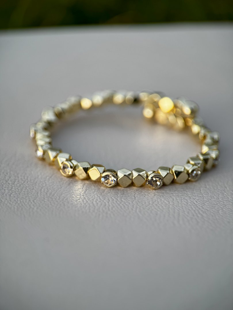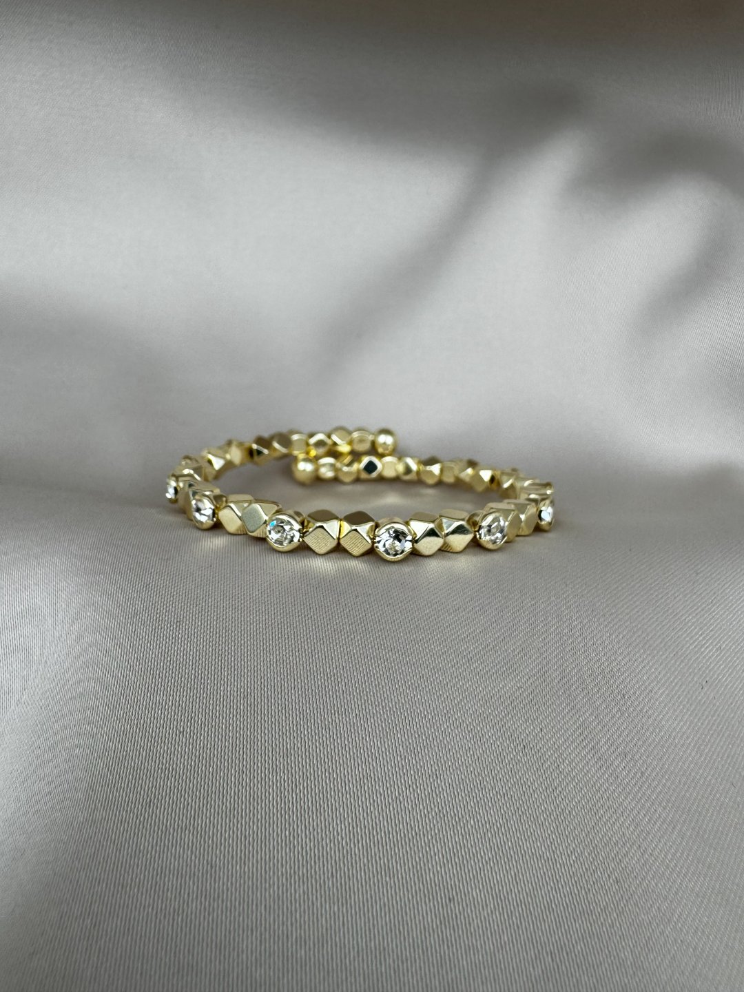LUSEDA’nın zamansız şıklığını yansıtan bu gold bileklik, geometrik formlu parlak detayları ve aralara yerleştirilmiş taş süslemeleriyle modern bir ışıltı sunar. Kararmaz metal yüzeyi sayesinde uzun ömürlü kullanım sağlar, parlaklığını ilk günkü gibi korur. Esnek formu sayesinde bileğe kolayca oturur ve gün boyu konforlu bir kullanım sunar.