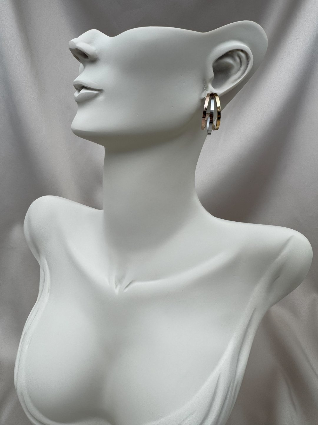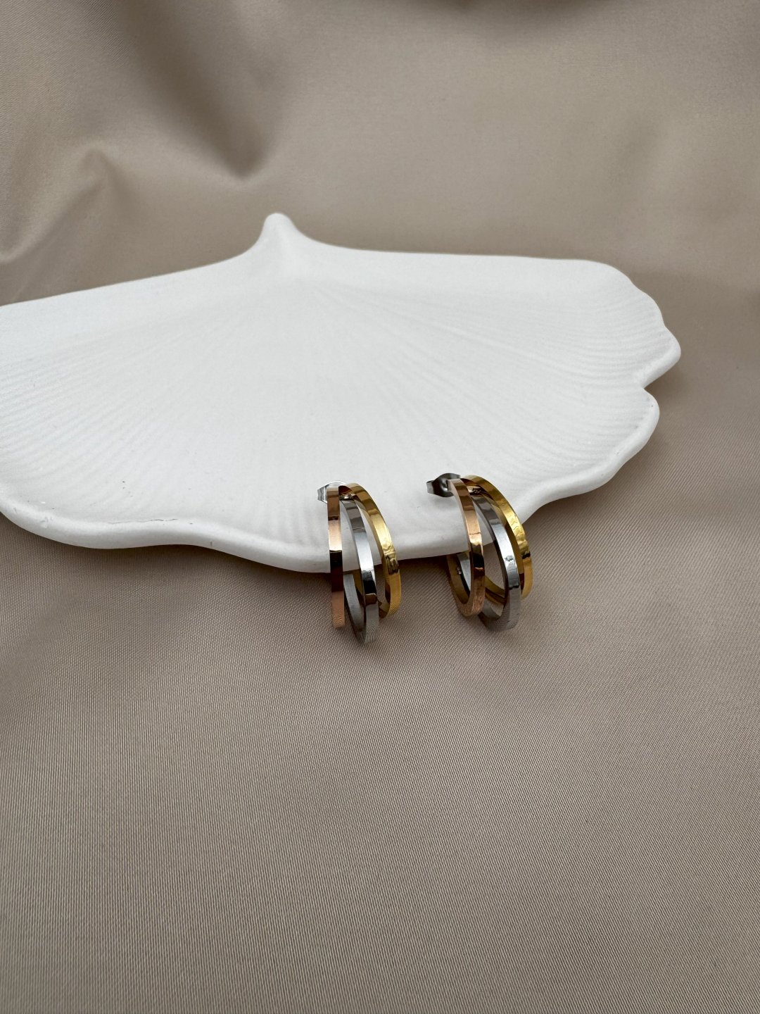 LUSEDA’nın modern tasarım anlayışıyla üretilen bu üç renkli halka küpe, altın, gümüş ve rose tonlarının zarif uyumunu bir araya getiriyor. Kararmaz, yüksek kaliteli çelik materyali sayesinde uzun ömürlü kullanım sunar ve parlak görünümünü daima korur. Hem günlük kombinlerde hem de özel davetlerde göz alıcı bir şıklık yakalamak isteyen kadınlar için tasarlanmıştır.