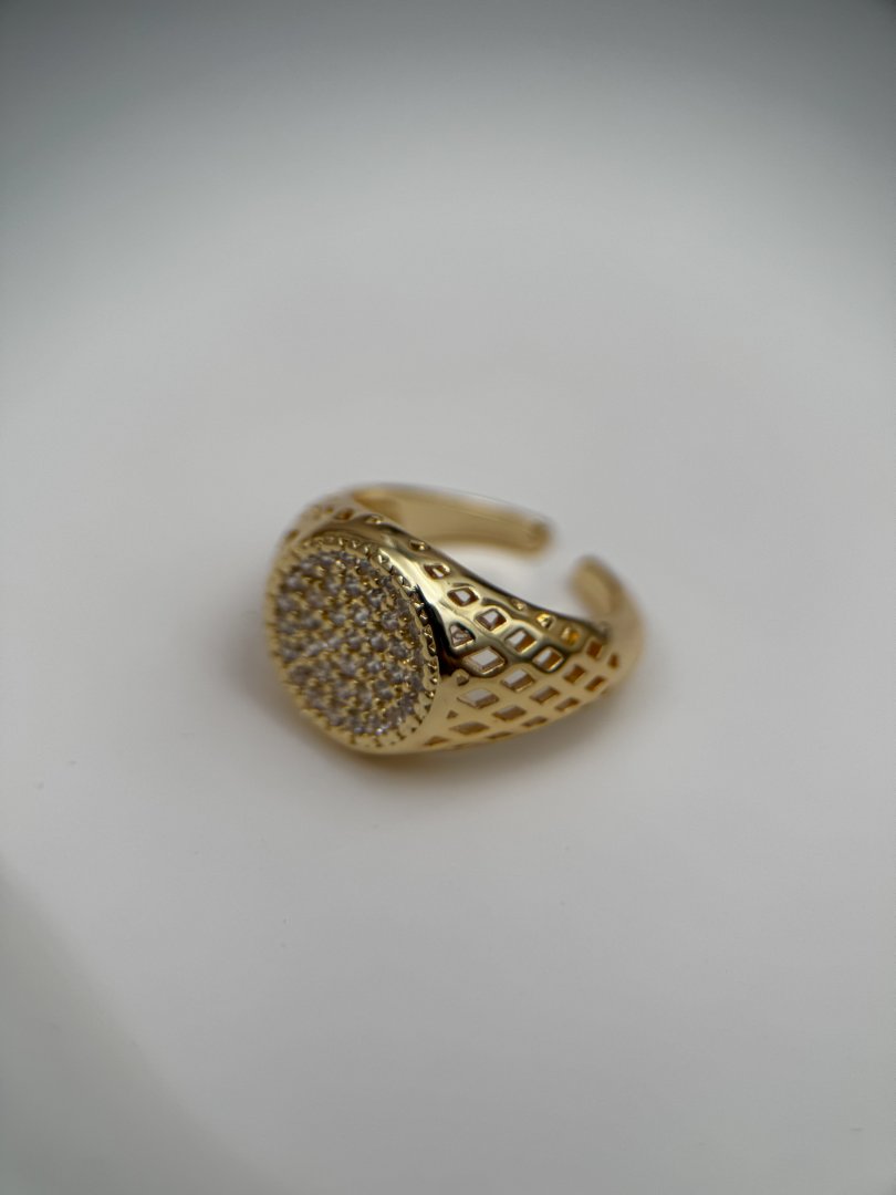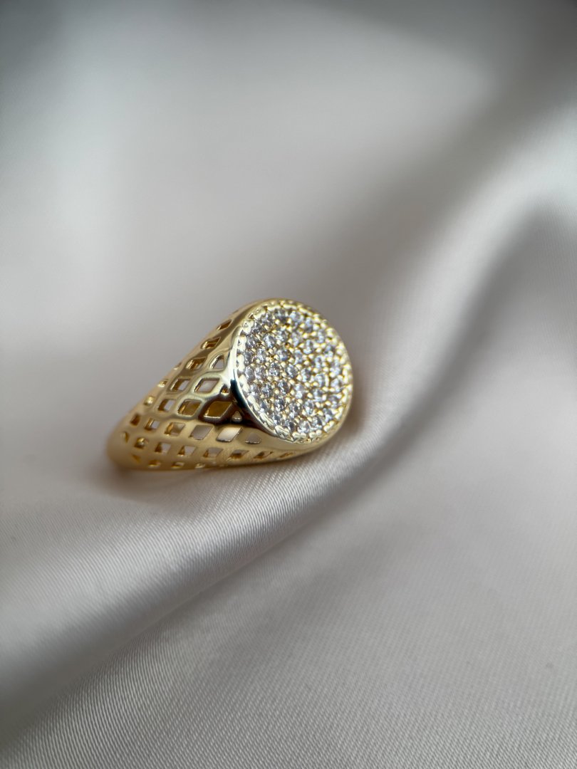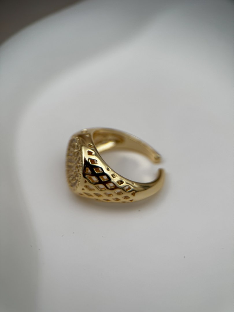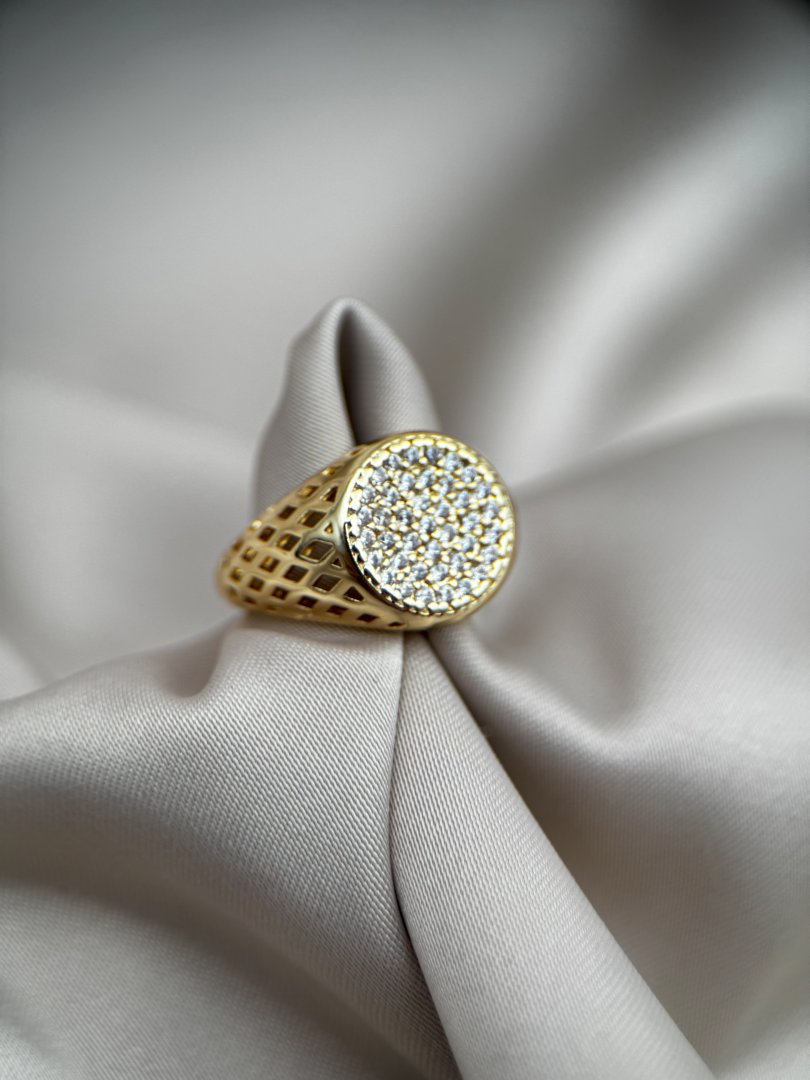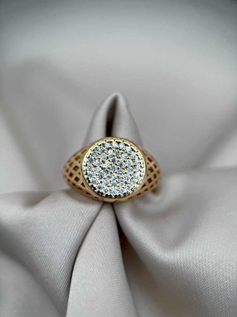 Gösterişli ve modern tasarımıyla öne çıkan bu yüzük, LUSEDA’nın şık koleksiyonunda dikkat çeken özel parçalardan biridir. Yuvarlak formdaki taşlı yüzeyi, zarif ışıltısıyla göz kamaştırırken, altın kaplama kararmaz çelik yapısı dayanıklılık ve uzun ömürlü kullanım sunar. Geniş gövdesi ve desenli yan detaylarıyla hem klasik hem de modern tarzlara mükemmel uyum sağlar. Günlük kombinlerden özel davetlere kadar şıklığınızı tamamlayan bu yüzük, aynı zamanda sevdiklerinize verebileceğiniz değerli bir hediye seçeneğidir.