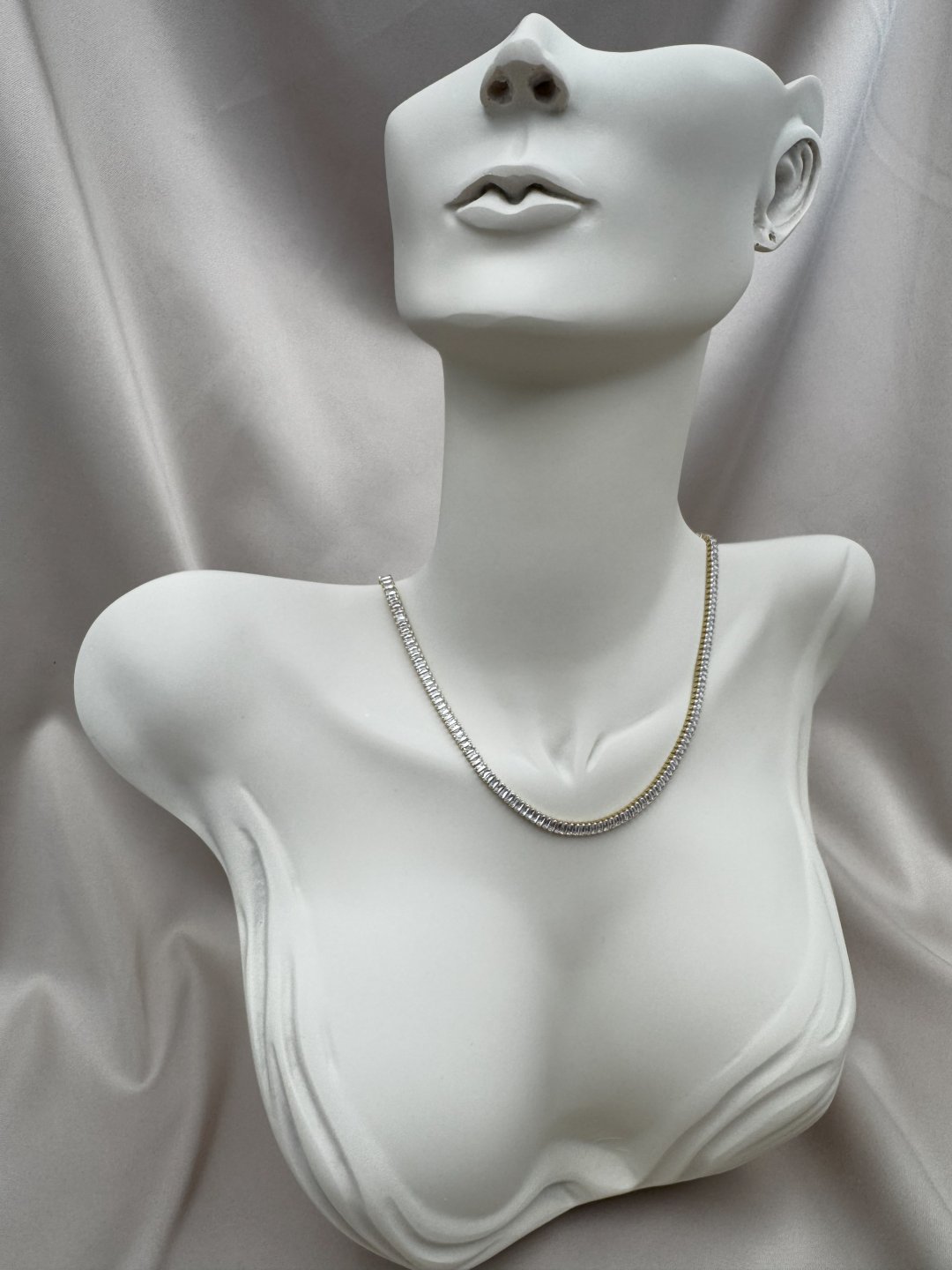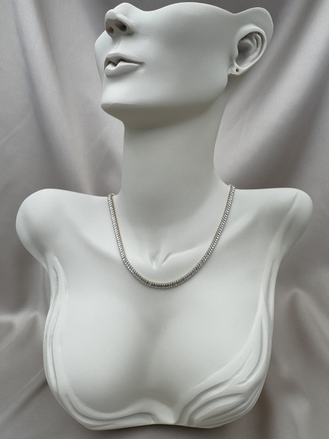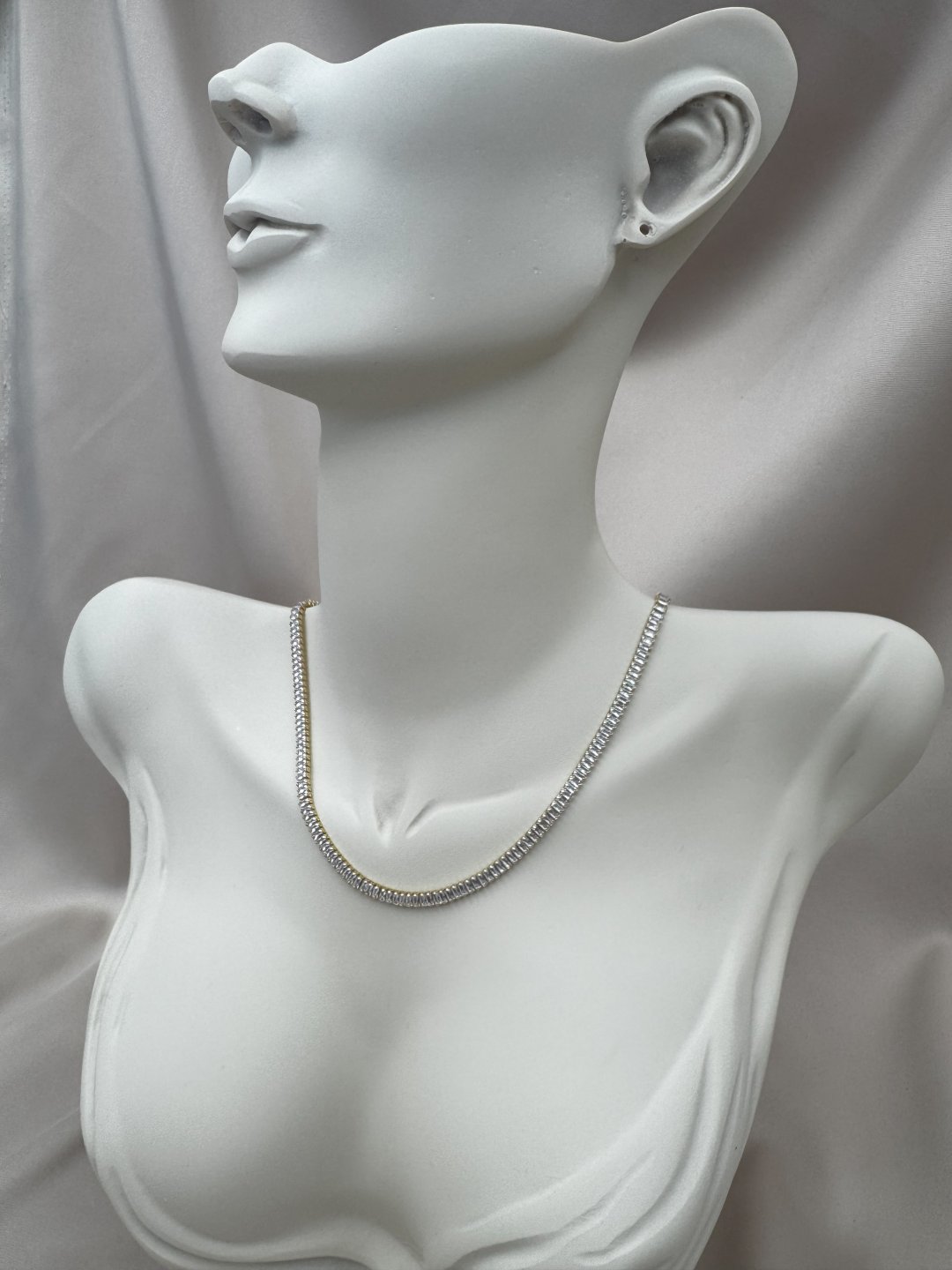 LUSEDA’nın lüks detaylarla tasarladığı bu gold baget taşlı kolye, zarif ışıltısı ve modern formuyla dikkat çeker. Her biri özenle yerleştirilmiş baget taşlar, ışığı kusursuz şekilde yansıtarak boyun hattına sofistike bir parlaklık katar. Kaliteli yapısı sayesinde uzun ömürlü kullanım sunar; cilt dostu yapısı ile alerji riskini en aza indirir.