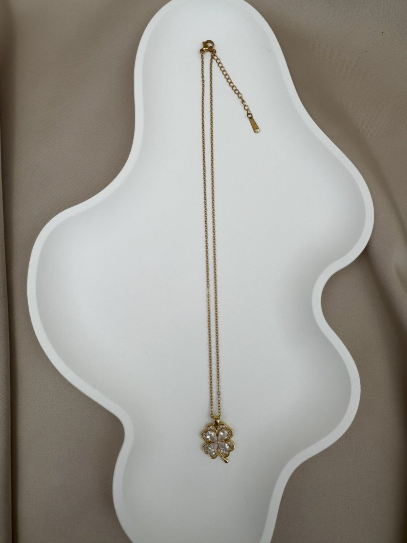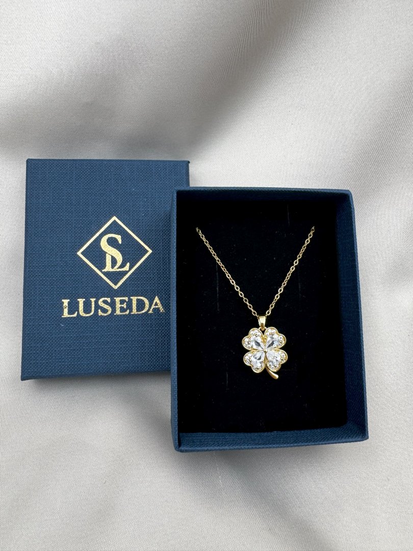 Luseda’nın zarif tasarımıyla öne çıkan dört yapraklı yonca kolye, şıklığı ve anlamı bir arada sunuyor. Kararmayan çelik yapısı sayesinde uzun yıllar ilk günkü parlaklığını koruyan bu özel tasarım, zirkon taşların ışıltısıyla modern ve lüks bir görünüm kazanıyor. Şans, umut ve pozitif enerjiyi temsil eden yonca sembolü, hem günlük kombinlerde hem de özel davetlerde stilinizi tamamlayacak eşsiz bir aksesuar sunuyor. Kendiniz için zarif bir hediye ya da sevdikleriniz için anlamlı bir armağan arıyorsanız Luseda’nın bu özel kolyesi mükemmel bir seçim olacaktır.