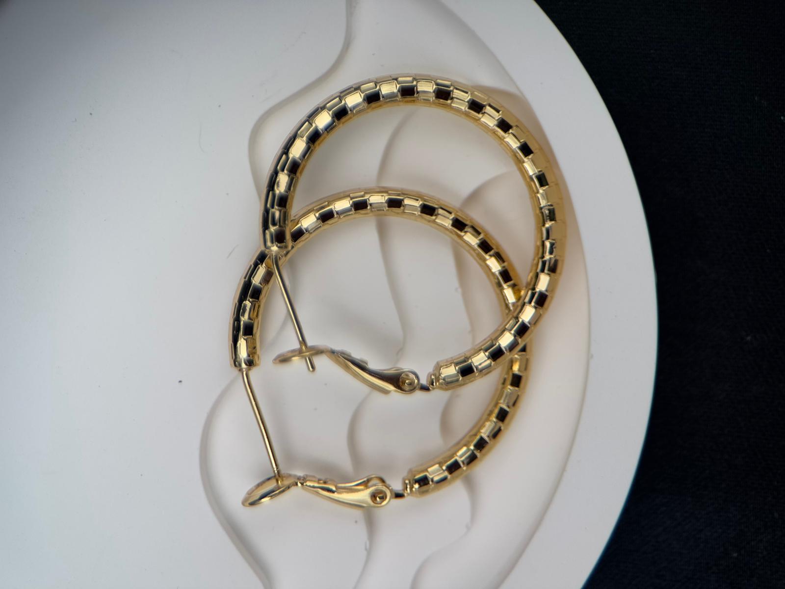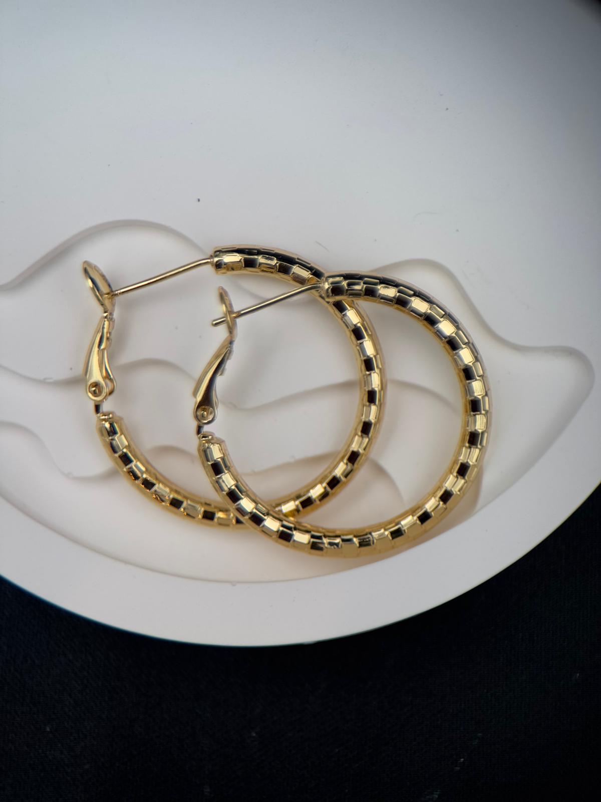 Göz alıcı tasarımıyla dikkat çeken bu gold renk kare desenli halka küpe, modern ve zarif stilin vazgeçilmez parçalarından biridir. Yüksek kaliteli paslanmaz çelikten üretilmiş olup kararmaz özelliği sayesinde uzun süre ilk günkü parlaklığını korur. Gold kaplamasının şıklığına kare desen detayları eşlik ederek tasarıma farklı bir hava katar. Hafif ve ergonomik yapısı sayesinde gün boyu rahat kullanım sağlar. Günlük kombinlerden özel davetlere kadar şıklığınızı tamamlayan bu halka küpe, dayanıklı yapısıyla uzun ömürlü kullanım sunar. Sevdiklerinize hediye etmek için de ideal bir seçimdir.