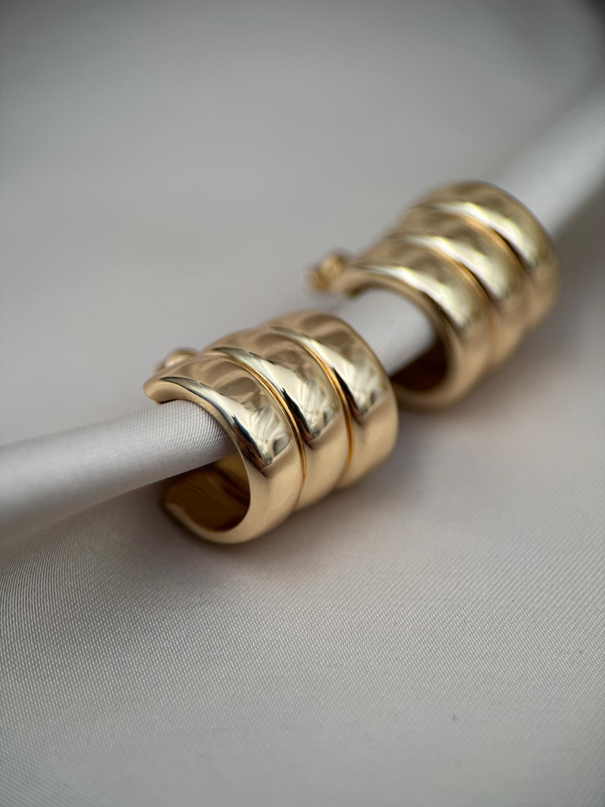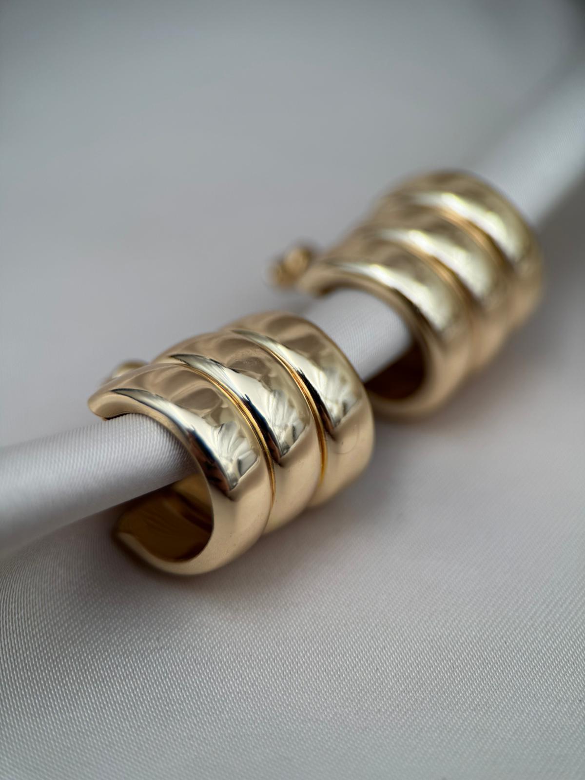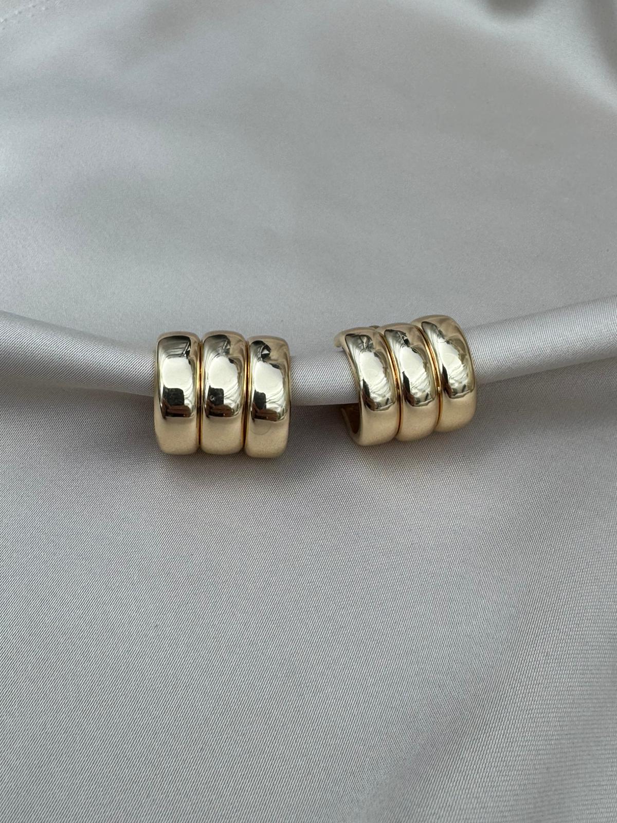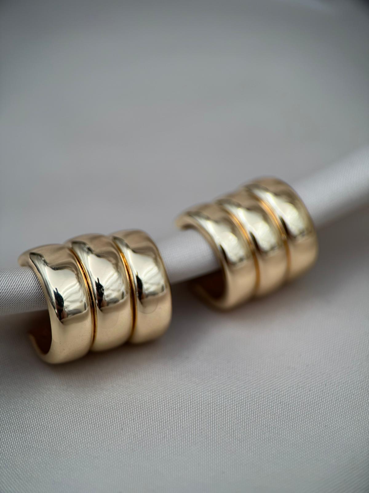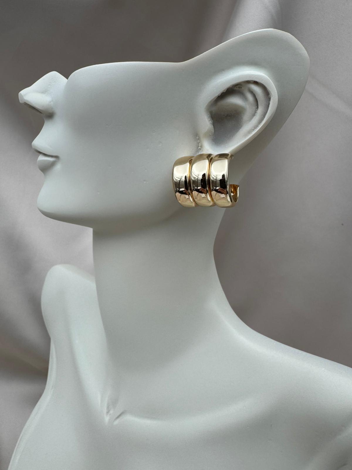 LUSEDA’nın modern zarafet anlayışını yansıtan bu altın tonlu üçlü görünümlü küpe, tek parçada çok halkalı görünümüyle sofistike bir şıklık sunar. Parlak yüzeyiyle ışığı zarifçe yansıtan bu özel tasarım, sade kombinlere ışıltılı bir dokunuş kazandırırken özel davetlerde de dikkat çekici bir tamamlayıcı olur. Hacimli formuna rağmen hafif yapısı sayesinde konforlu bir kullanım sağlar. LUSEDA’nın detaylara verdiği özenle hazırlanan bu küpe, zarafet ve modernliği aynı potada buluşturur. Zamansız formu sayesinde her stile uyum sağlayarak, günlük şıklığın vazgeçilmez parçası haline gelir.