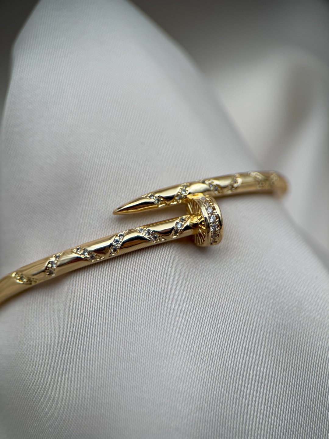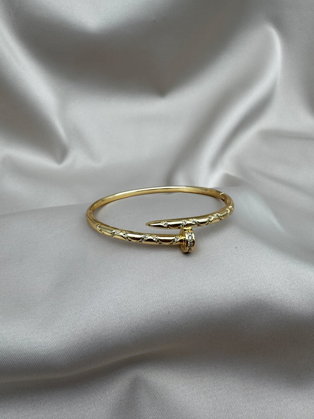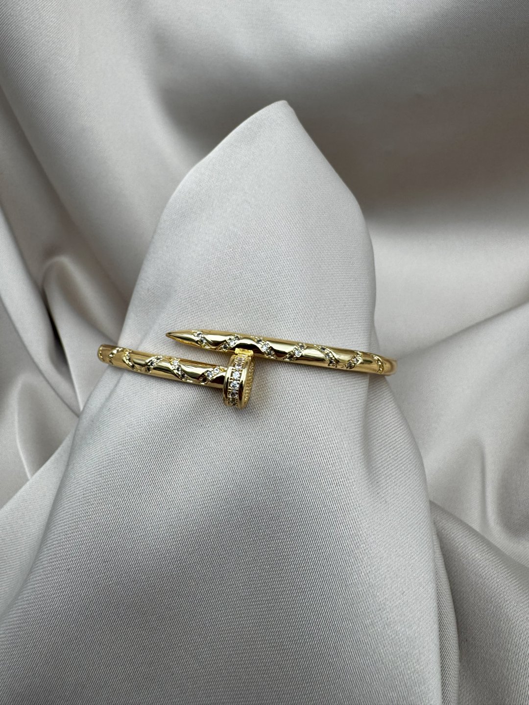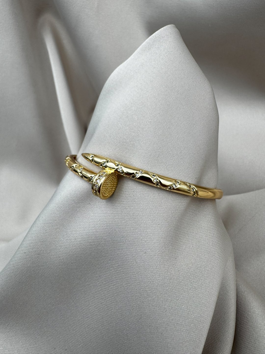 LUSEDA’nın zarif detaylarla tasarlanan bu zirkon taşlı vidalı bilekliği, modern lüksü sade bir formda sunar. Altın renkli kararmaz çelik materyali sayesinde uzun ömürlü kullanım sağlar; su, parfüm ve nem gibi etkenlere karşı yüksek dayanıklılığa sahiptir. Parlak zirkon taşlar, ışığı her açıdan zarif bir şekilde yansıtarak bileğe dikkat çekici bir ışıltı katar. Minimal çizgileri ve zarif formuyla hem gündelik stillerde hem de özel davetlerde kusursuz bir tamamlayıcıdır.