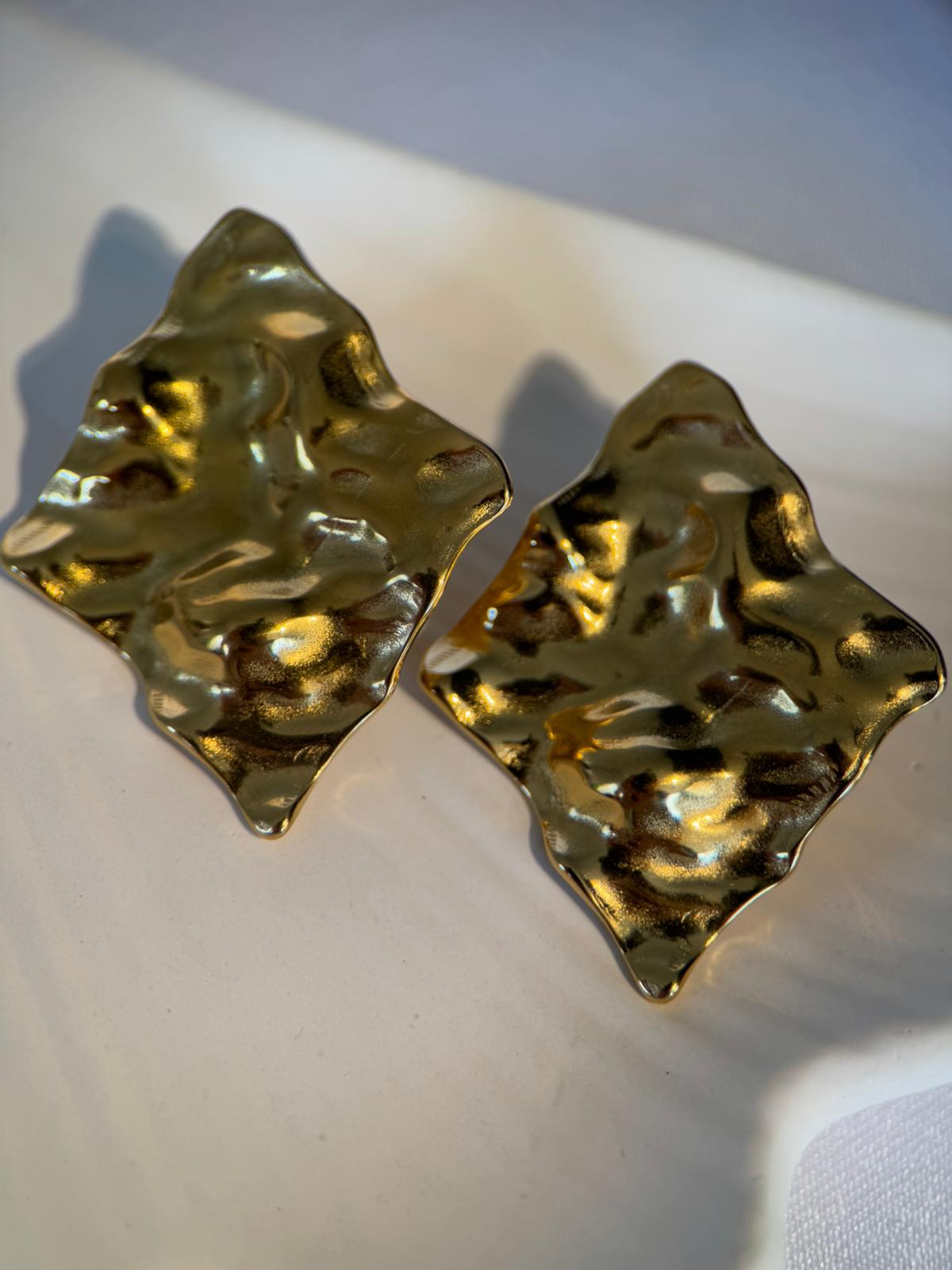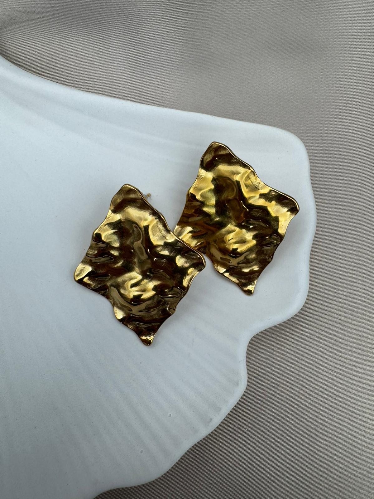 Gold Renk Heykelsi Form Kararmaz Çelik Küpe