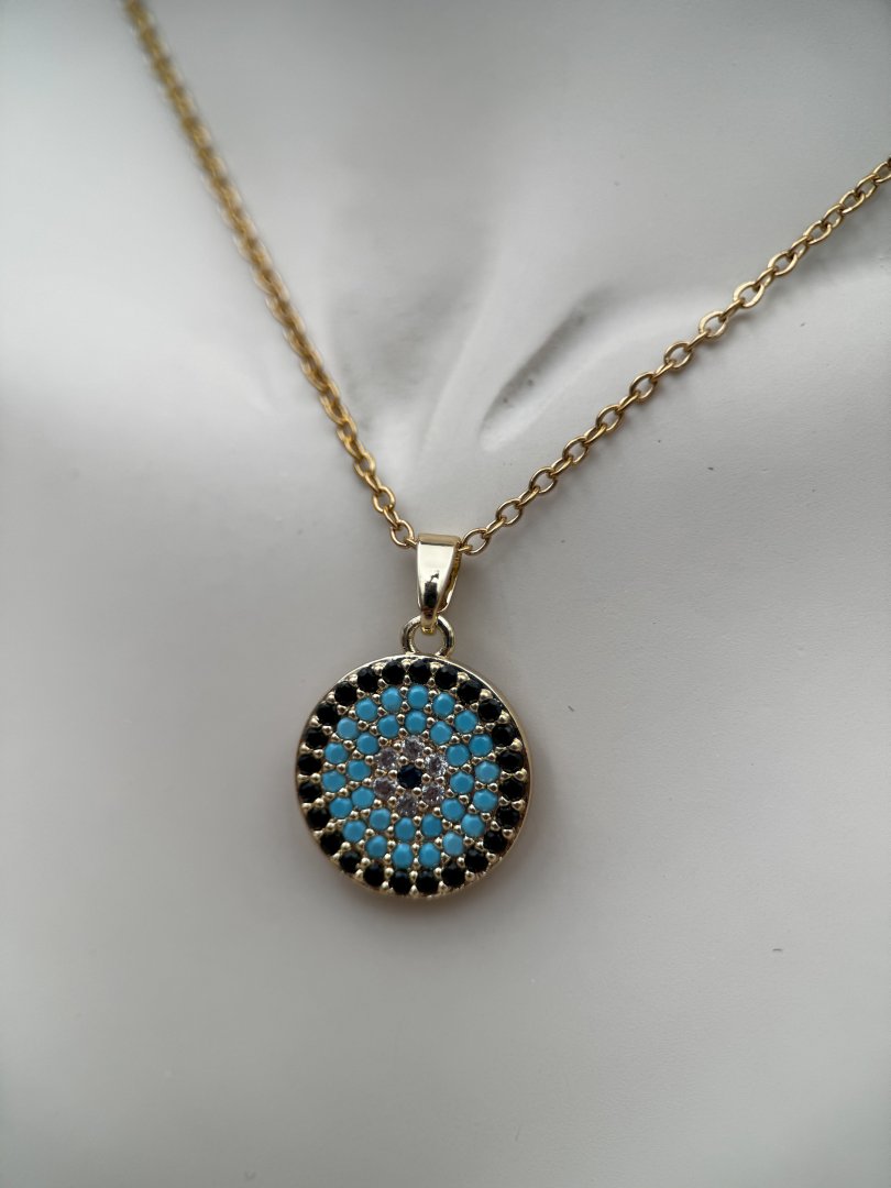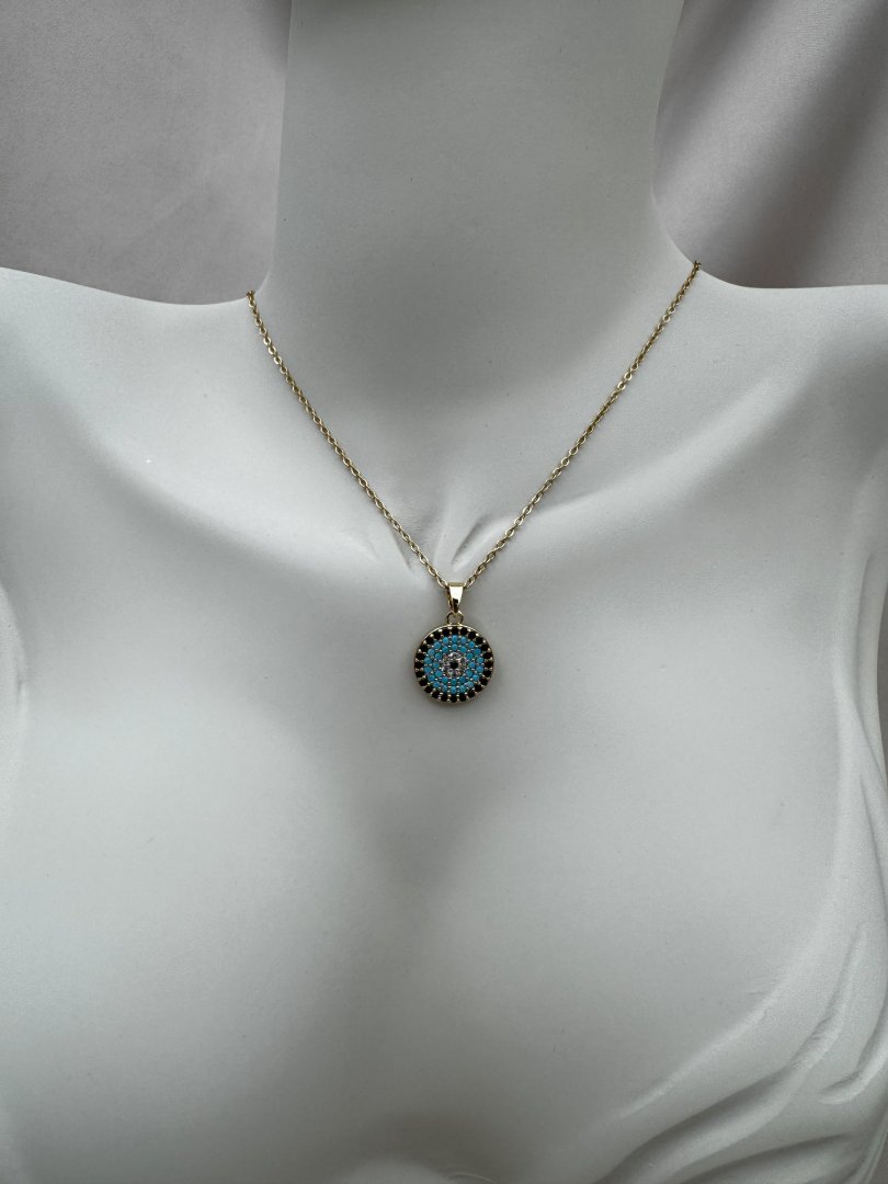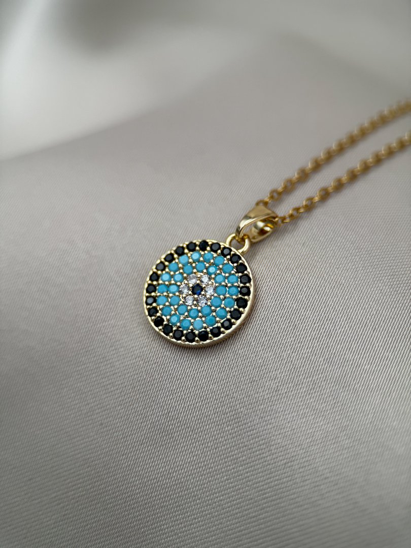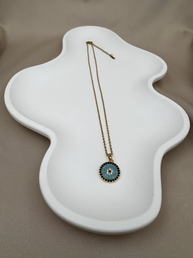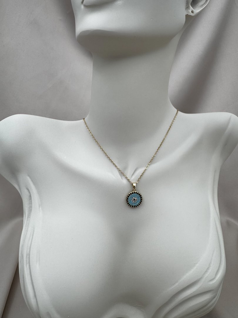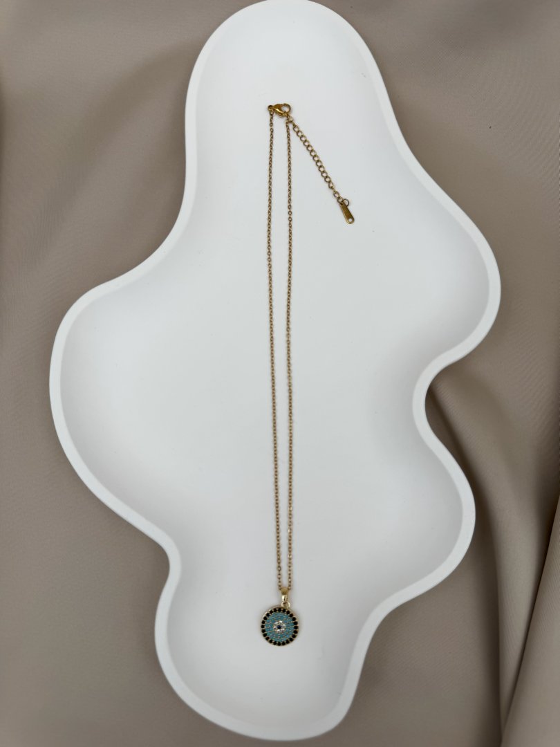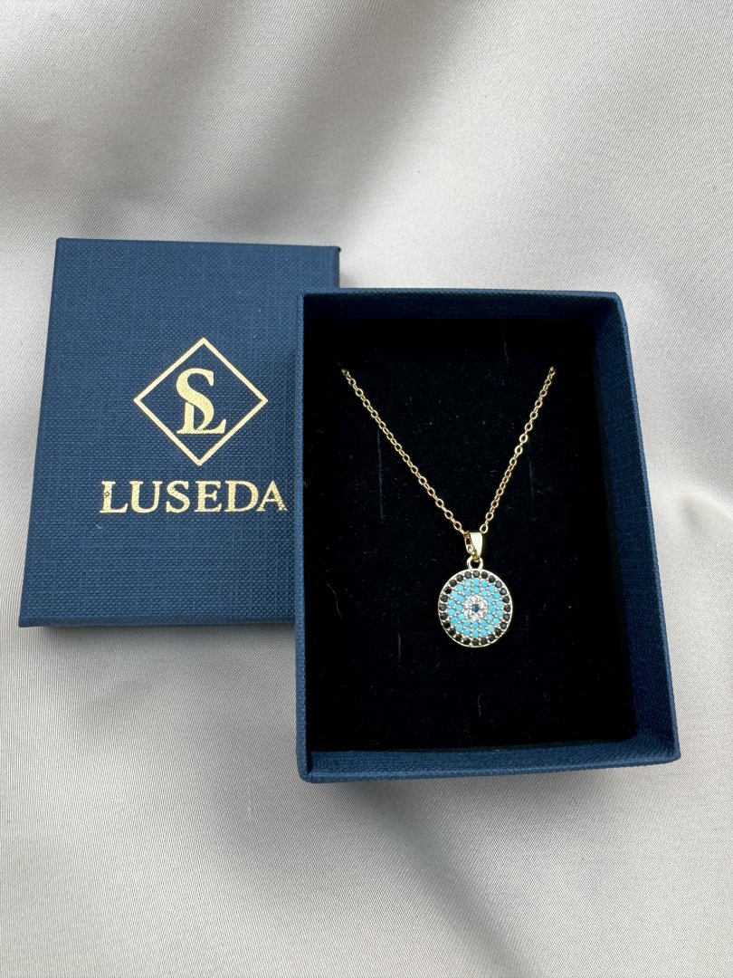 Luseda’nın zarif dokunuşunu taşıyan altın rengi nazar boncuklu kolye, modern tasarımıyla stilinize hem şıklık hem de anlam katıyor. Turkuaz taşlarla işlenmiş yuvarlak nazar boncuğu motifi, kötü enerjilere karşı koruyucu bir sembol sunarken, paslanmaz ve kararmaz yüksek kaliteli çelik malzemesi sayesinde uzun yıllar ilk günkü parlaklığını korur. Hafif yapısı ve zarif zinciri ile gün boyu rahatlıkla kullanılabilen bu özel tasarım, ister günlük kombinlerinizde ister özel davetlerde stilinizi tamamlayacak güçlü bir detaydır. Kendinize ya da sevdiklerinize anlamlı ve şık bir hediye olarak da mükemmel bir seçimdir.