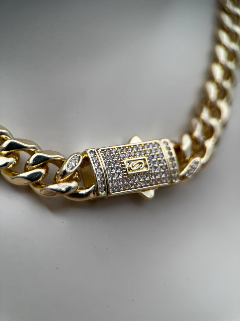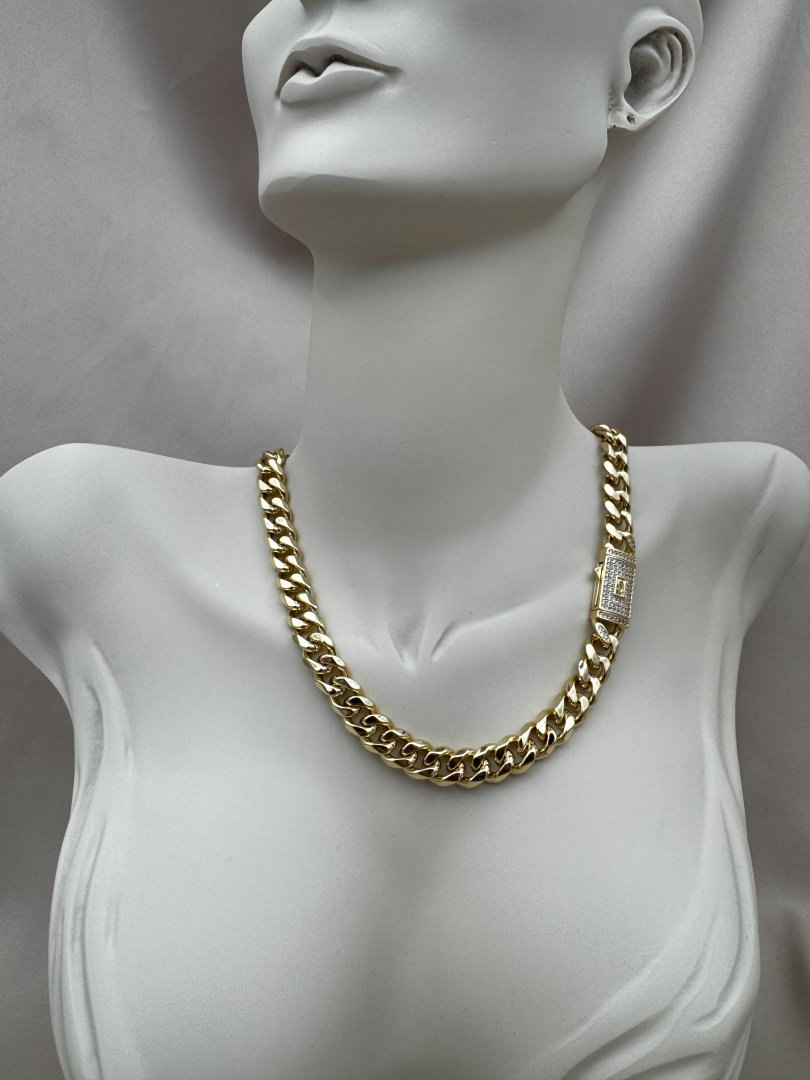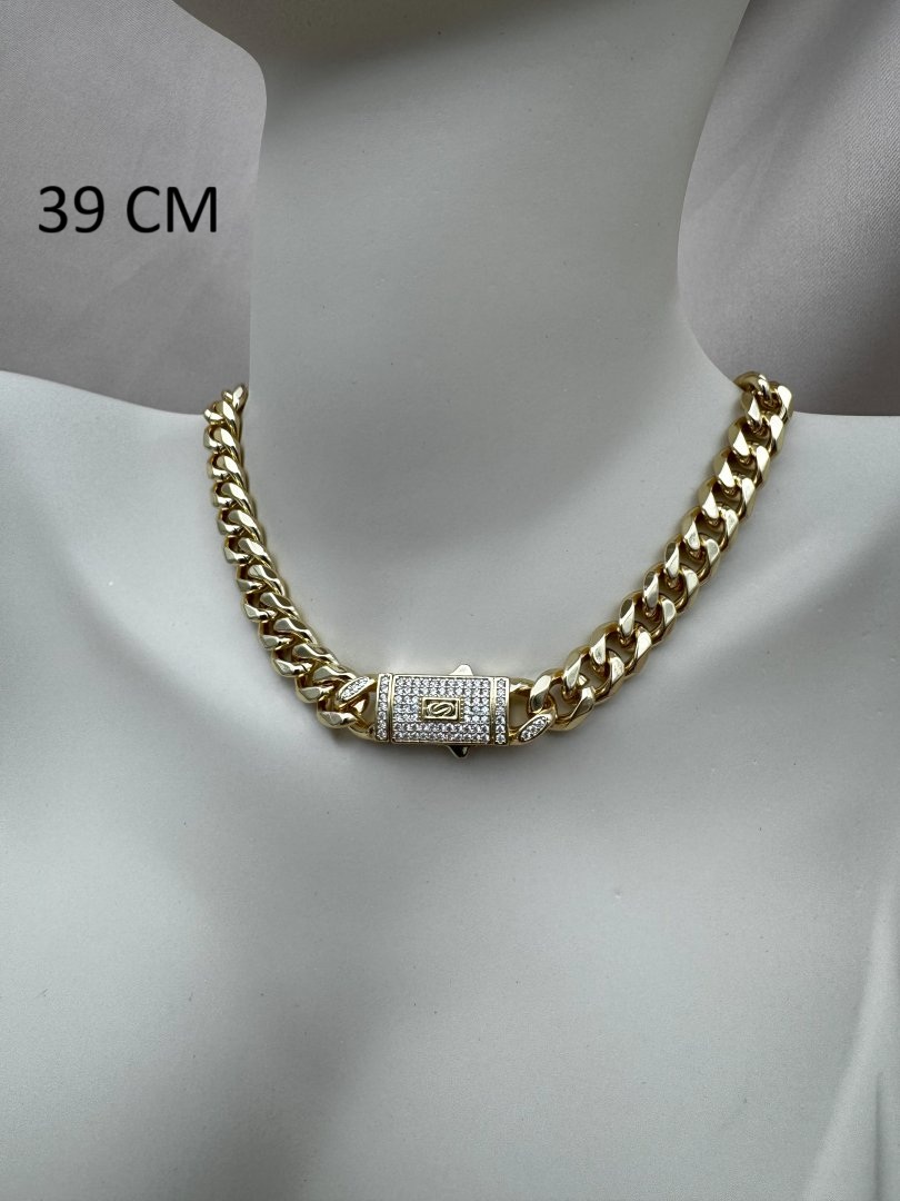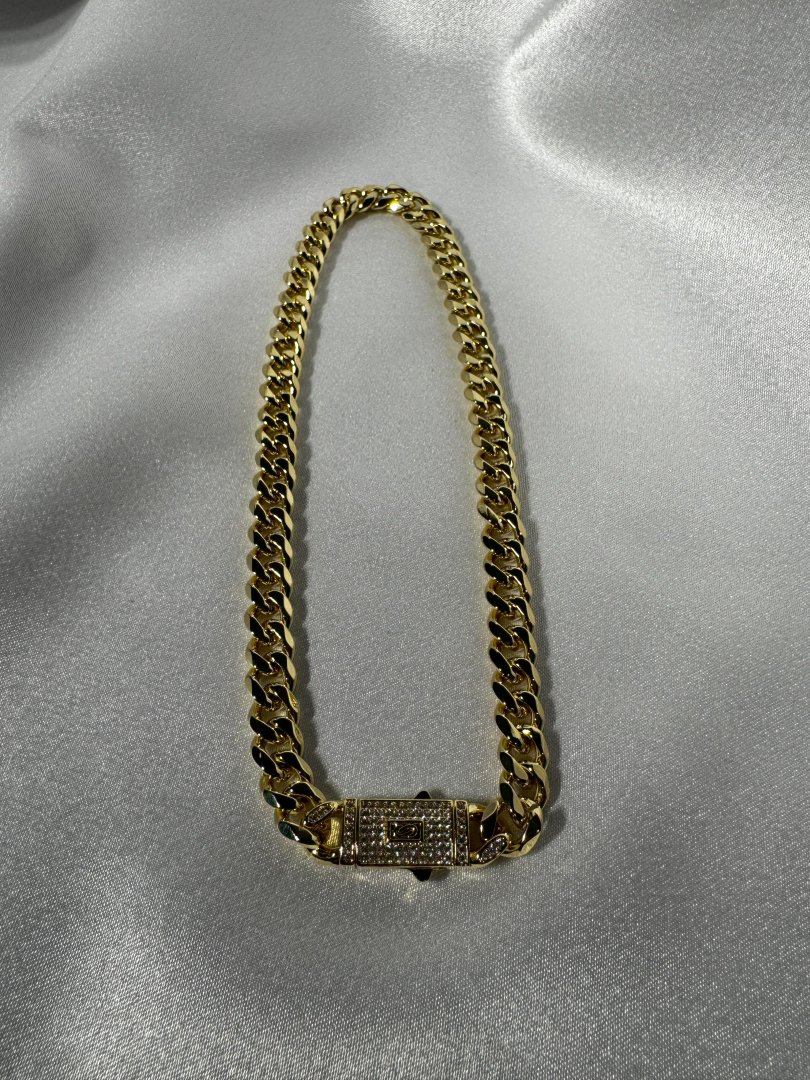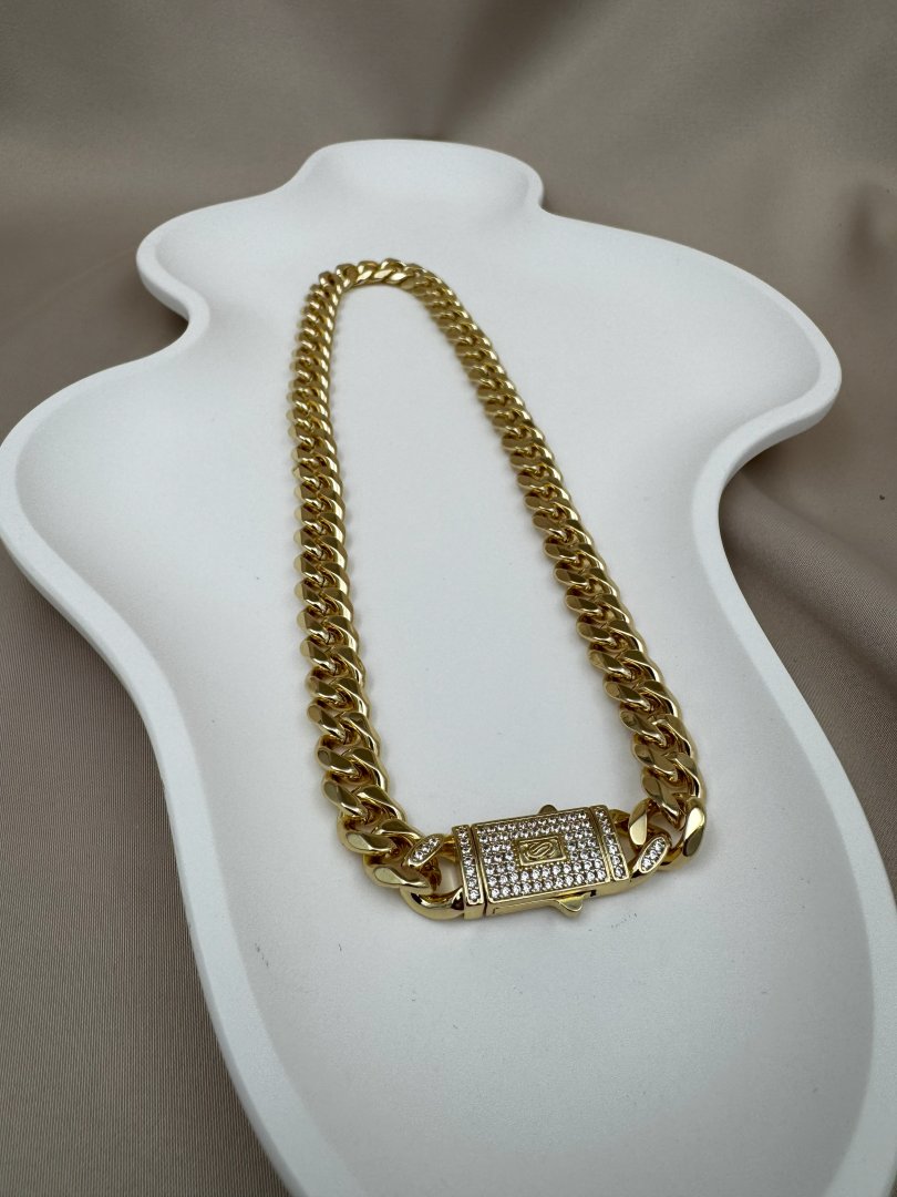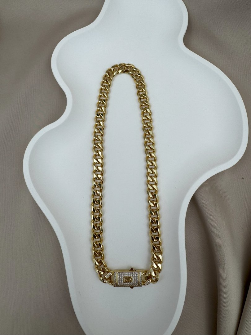 Luseda’nın zarafetle güçlenmiş tasarımıyla öne çıkan bu kalın gold zincir kolye, modern stilinize cesur bir dokunuş katıyor. Parlak taş detaylarıyla zenginleştirilmiş özel kilit tasarımı, hem şıklığı hem de güvenli kullanımı bir arada sunar. Kararmaya dayanıklı yüksek kaliteli çelikten üretilen bu lüks kolye, uzun ömürlü kullanım için özenle hazırlanmıştır. Gündelik kombinlerden özel davetlere kadar her ortamda stilinizi ön plana çıkaracak bu parçayı koleksiyonunuza ekleyerek ışıltınızı güçlendirin.