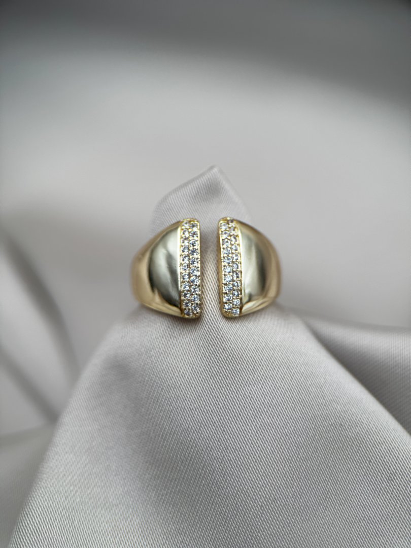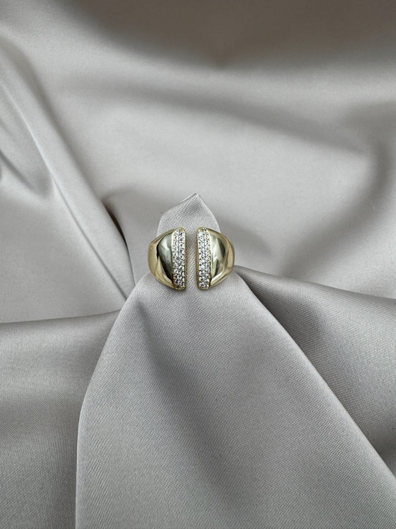 Zarafeti ve modernliği bir arada sunan bu yüzük, LUSEDA’nın şık koleksiyonunun dikkat çeken parçalarından biridir. Kararmaz, yüksek kalite çelik üzerine altın kaplama ile tasarlanan yüzük; parlak taş detaylarıyla ışıldayarak günlük kombinlerden özel davetlere kadar her stile uyum sağlar. Geniş ve modern formu sayesinde hem tek başına hem de diğer takılarla birlikte kullanıldığında güçlü bir şıklık yaratır. Suya, terlemeye ve parfüm temasına karşı dayanıklı yapısıyla uzun süre ilk günkü parlaklığını korur. Kendiniz için zarif bir seçim ya da sevdikleriniz için anlamlı bir hediye alternatifi arıyorsanız bu yüzük tam size göre!