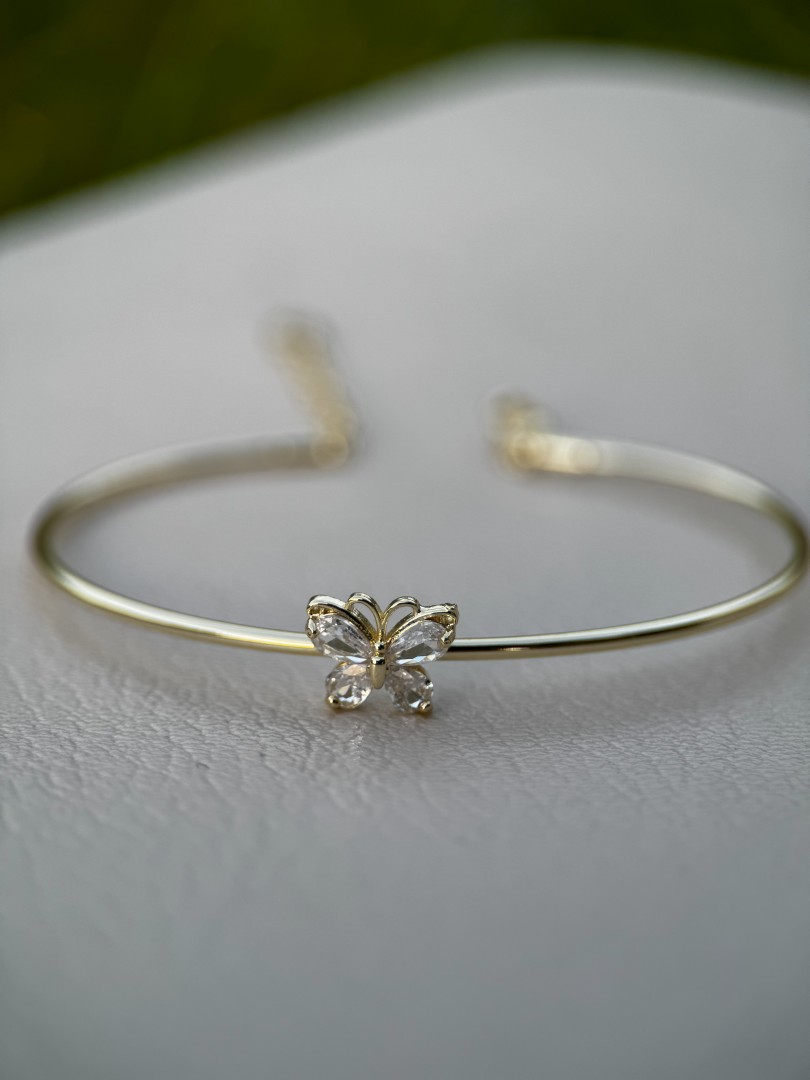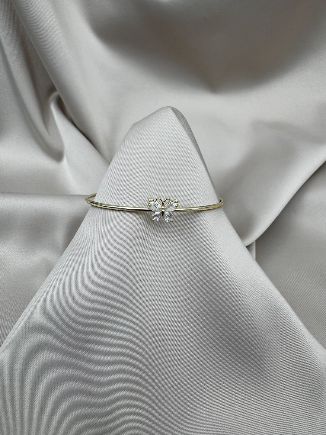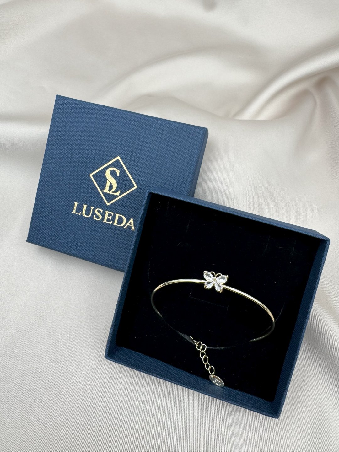 LUSEDA’nın zarafet anlayışını yansıtan bu kelebek figürlü taşlı bileklik, sade ama etkileyici tasarımıyla dikkat çeker. Parlak zirkon taşlarla süslenmiş kelebek detayı, zarafeti ve özgürlüğü simgeler. İnce gold formu sayesinde bilekte zarif bir duruş sağlar ve kararmaz yapısıyla uzun ömürlü kullanım sunar. Günlük kullanımlarda minimal bir ışıltı, özel günlerde ise sofistike bir tamamlayıcı olarak stilinizi ön plana çıkarır.