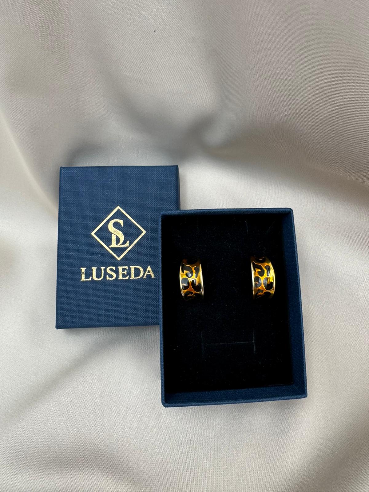 LUSEDA’nın cesur ve zarif çizgisini yansıtan bu mineli leopar desenli halka küpe, klasik şıklığı modern detaylarla birleştiriyor. Parlak mine yüzeyiyle işlenmiş leopar desen, altın ton çerçeveyle buluşarak güçlü ve sofistike bir görünüm kazandırır. Günlük kombinlere enerjik bir dokunuş katar, özel davetlerde ise göz alıcı bir tamamlayıcı haline gelir. Hafif yapısı sayesinde gün boyu konforla kullanılabilir. LUSEDA’nın özenli işçiliğiyle hazırlanan bu model, detaylarda zarafeti arayan kadınların stilini mükemmel şekilde yansıtır. Ürünün parlaklığını uzun süre koruması için parfüm, krem ve suyla temas ettirilmemesi önerilir.