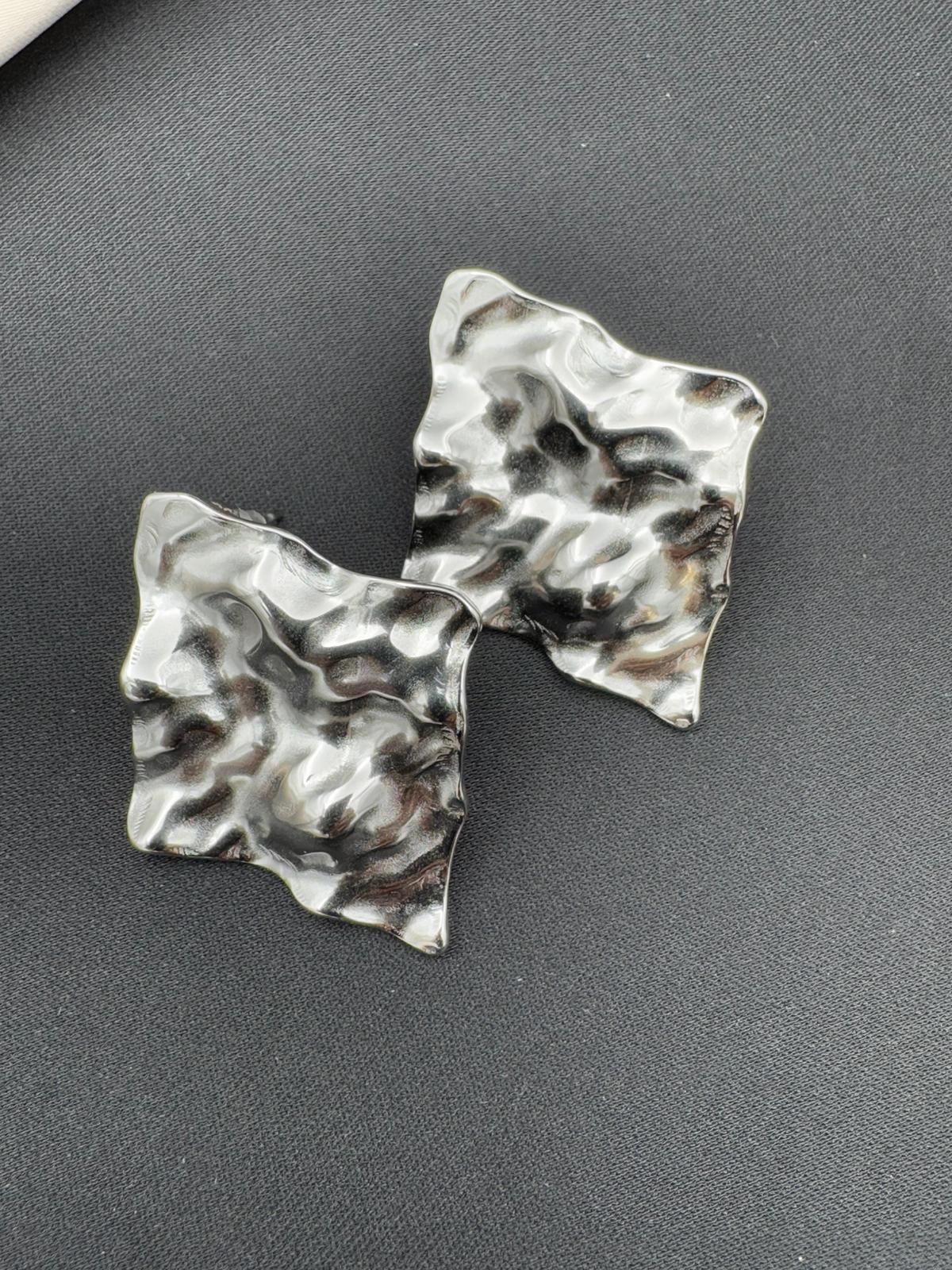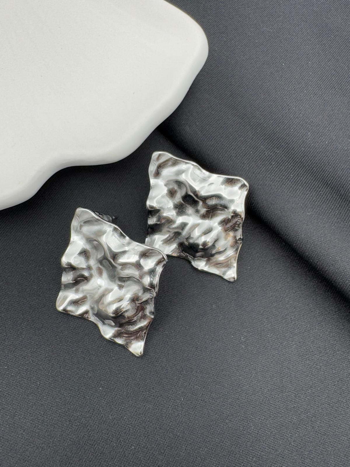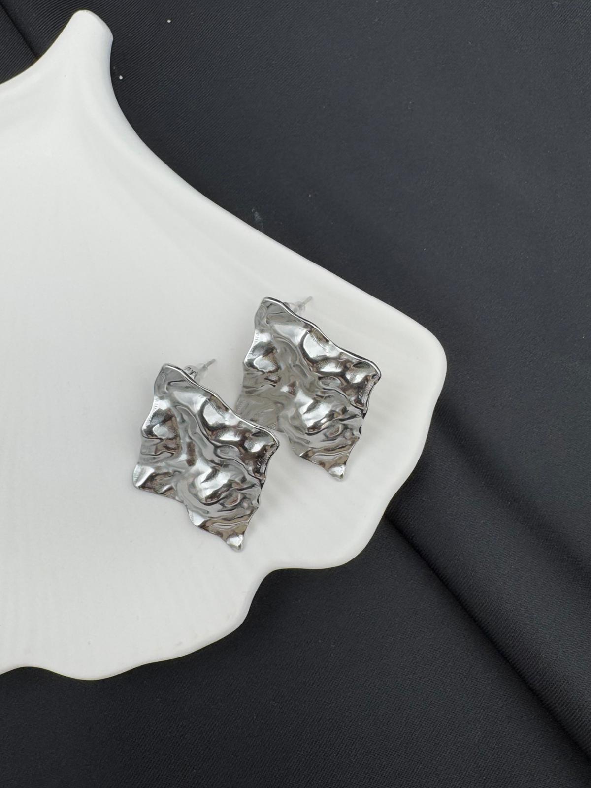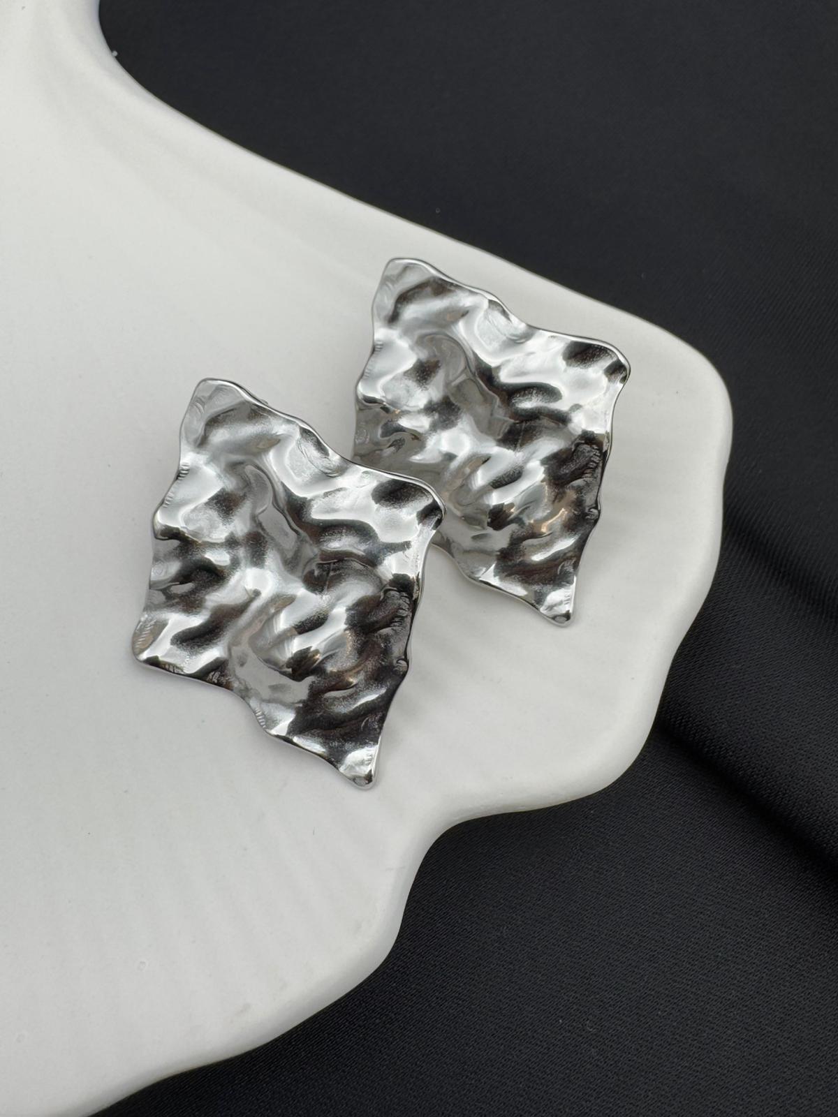 Gümüş Renk Özel Tasarım Heykelsi Form Kararmaz Çelik Küpe