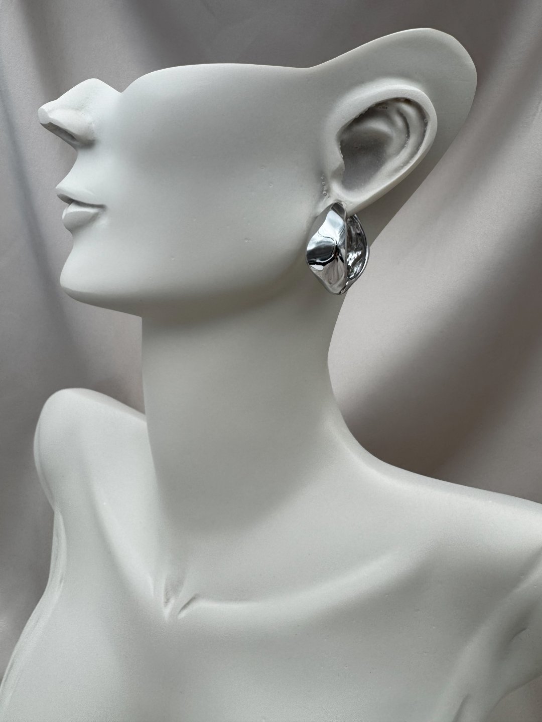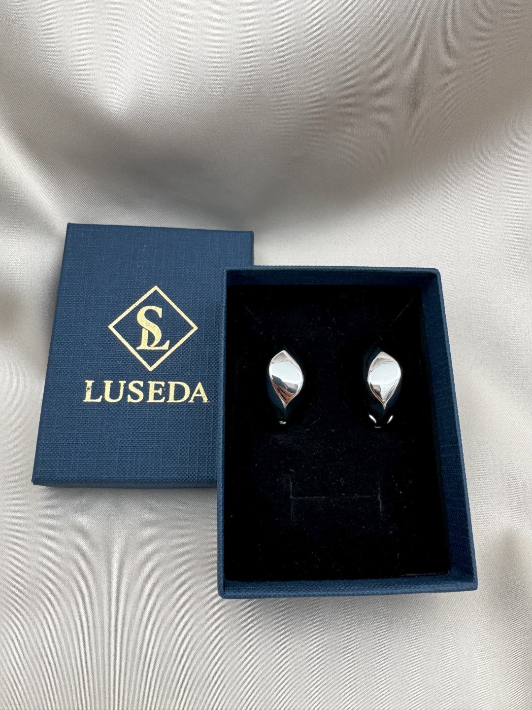 LUSEDA’nın zarif çizgilerinden ilham alınarak tasarlanan bu parlak gümüş renk küpe, modern formu ve heykelsi dokusuyla dikkat çeker. Volümlü yapısı sayesinde sade kombinlerde bile güçlü bir duruş sergilerken, parlak yüzeyi ışığı yansıtarak sofistike bir görünüm kazandırır. Günlük kullanımda konforlu, özel günlerde ise çarpıcı bir tamamlayıcıdır.
