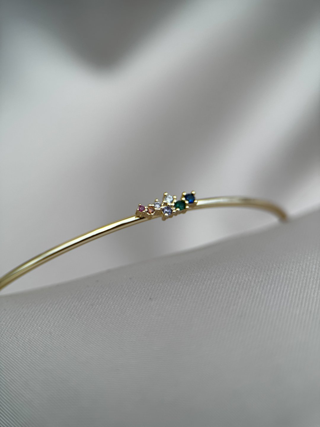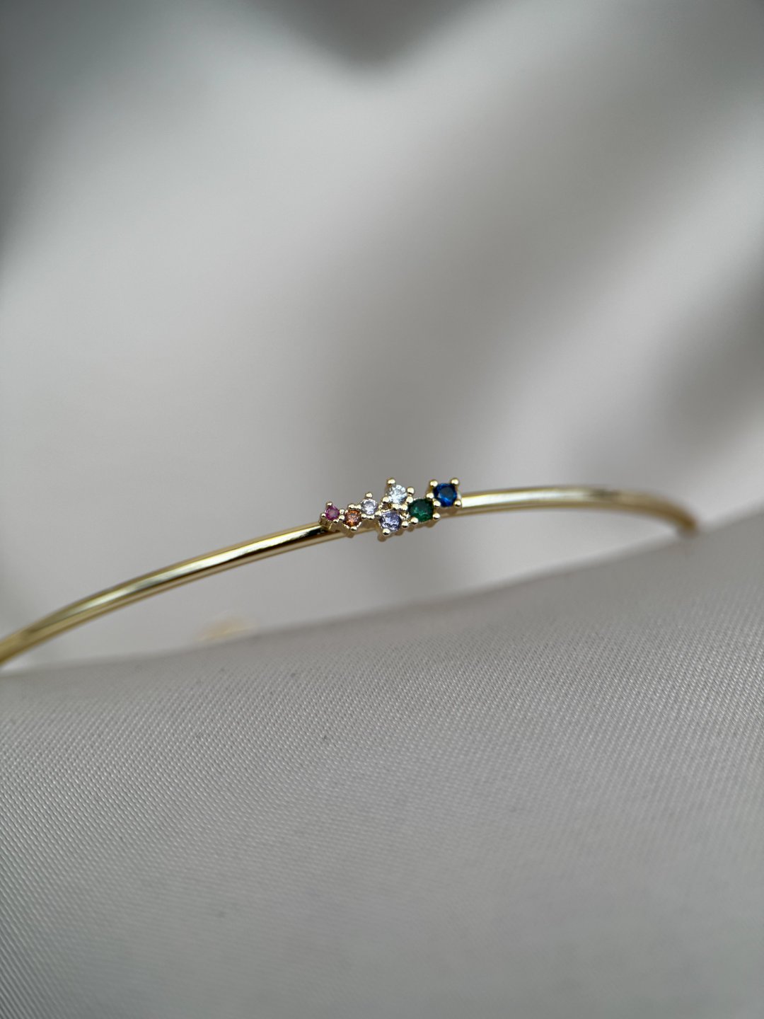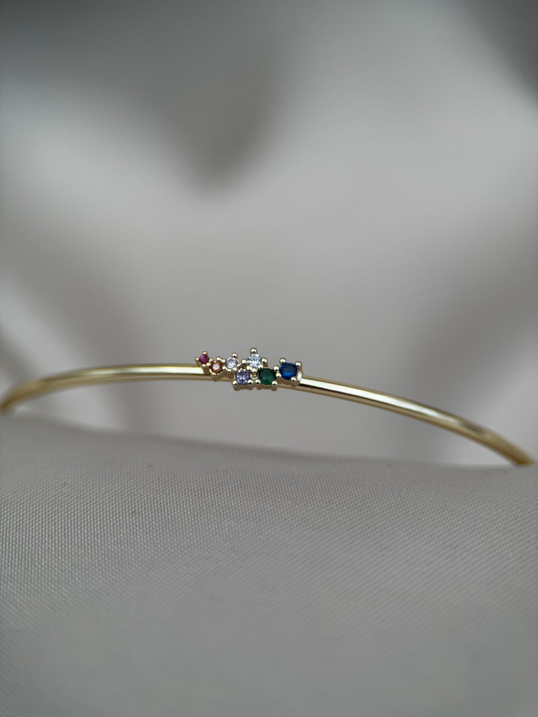 LUSEDA’nın zarafetiyle tasarlanan bu ince bileklik, minimal çizgisi ve renkli taş detaylarıyla sade ama etkileyici bir görünüm sunar. Her biri özenle yerleştirilmiş çok renkli taşlar, bileğinize ışıltı katarken stilinizi zarif bir dokunuşla tamamlar. Hafif yapısı sayesinde gün boyu rahatlıkla kullanılabilir; ister günlük kombinlerinize modern bir şıklık, ister özel davetlerde sofistike bir detay ekleyin. Altın tonunun sıcak ışıltısı, farklı renklerdeki taşlarla mükemmel bir uyum yakalar. LUSEDA kalitesiyle hazırlanan bu özel tasarım bileklik, kendiniz veya sevdikleriniz için zarif bir hediye seçeneğidir.