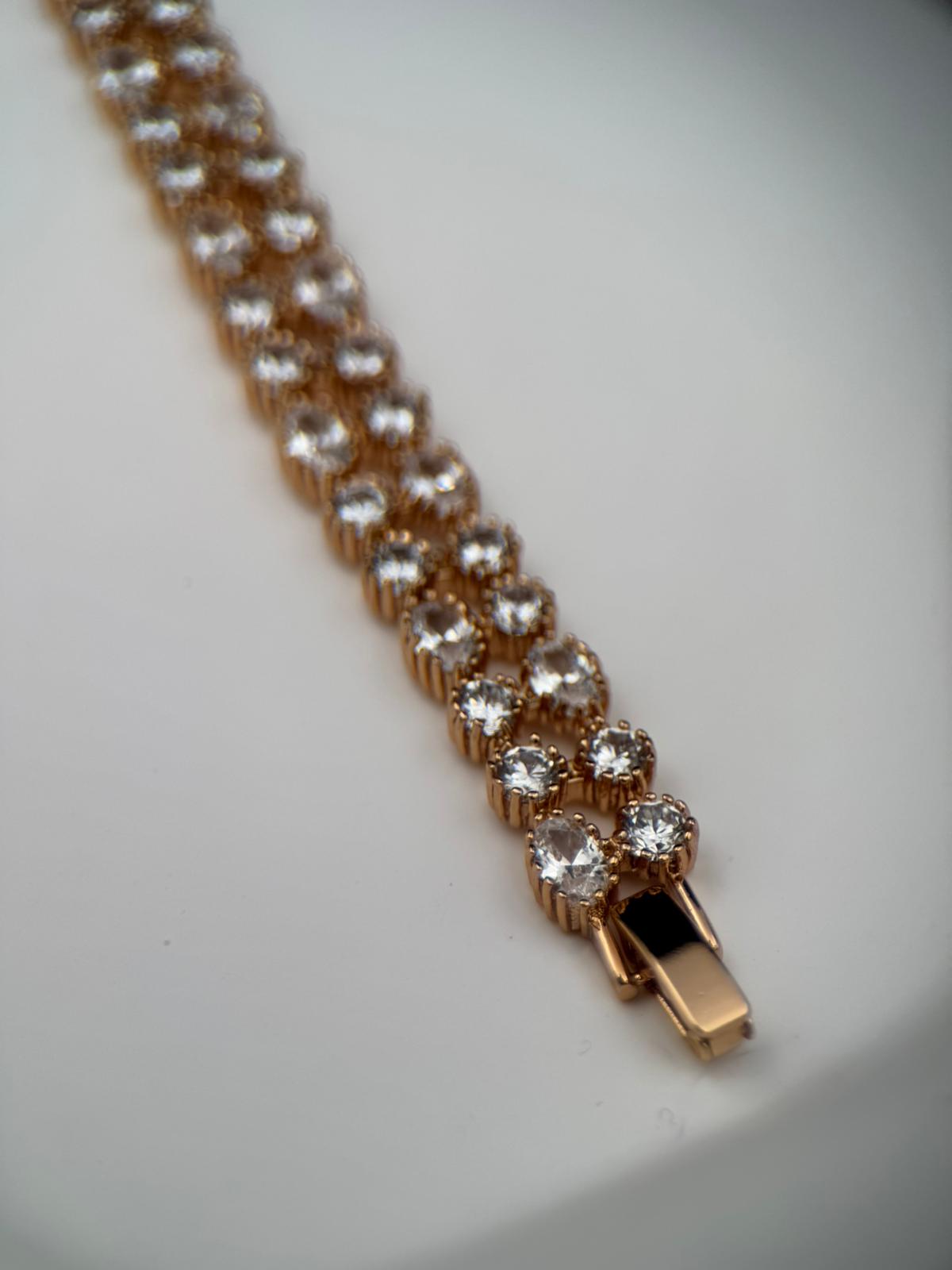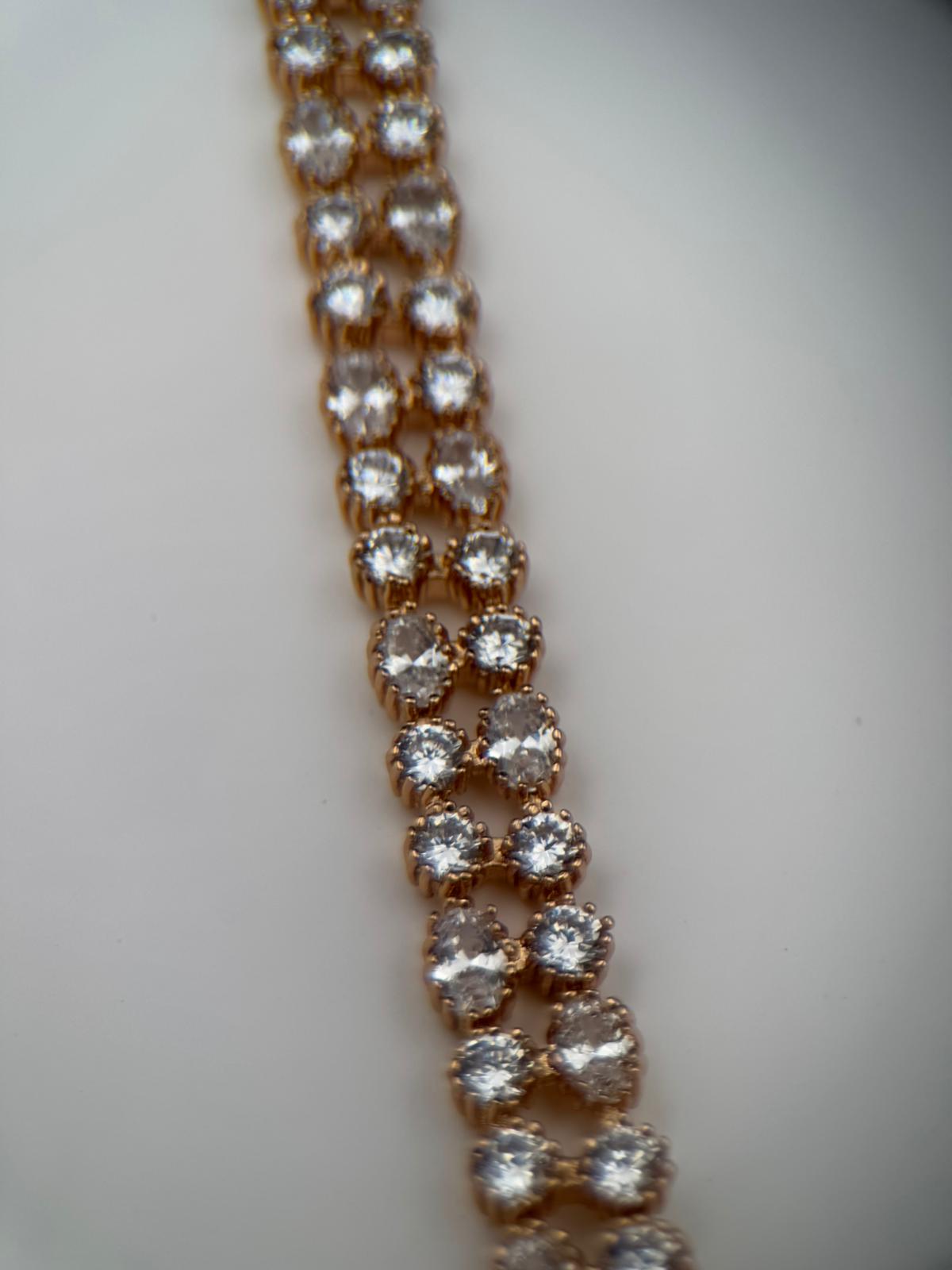 Gösterişli ve zarif tasarımıyla dikkat çeken bu zirkon taşlı rose gold bileklik, ışıl ışıl parlayan taşlarıyla her anınıza ışıltı katar. Suya, terlemeye ve dış etkenlere kararmaz çelik yapısı sayesinde uzun süre ilk günkü parlaklığını korur. Günlük şıklığınızı tamamlamak ya da özel davetlerde göz kamaştırmak için mükemmel bir tercihtir.