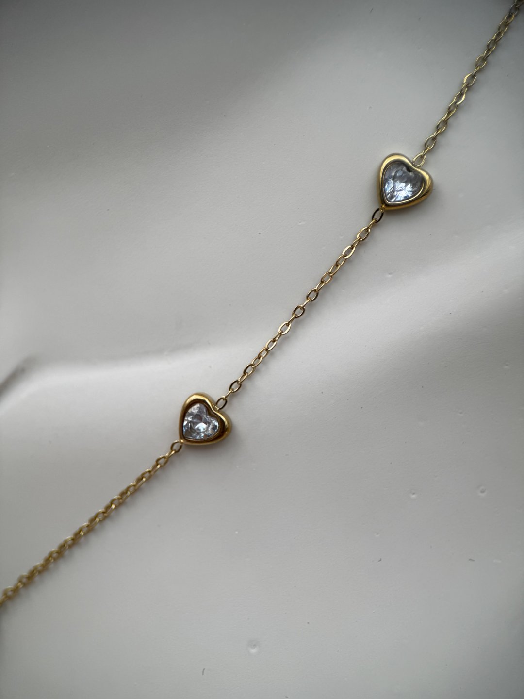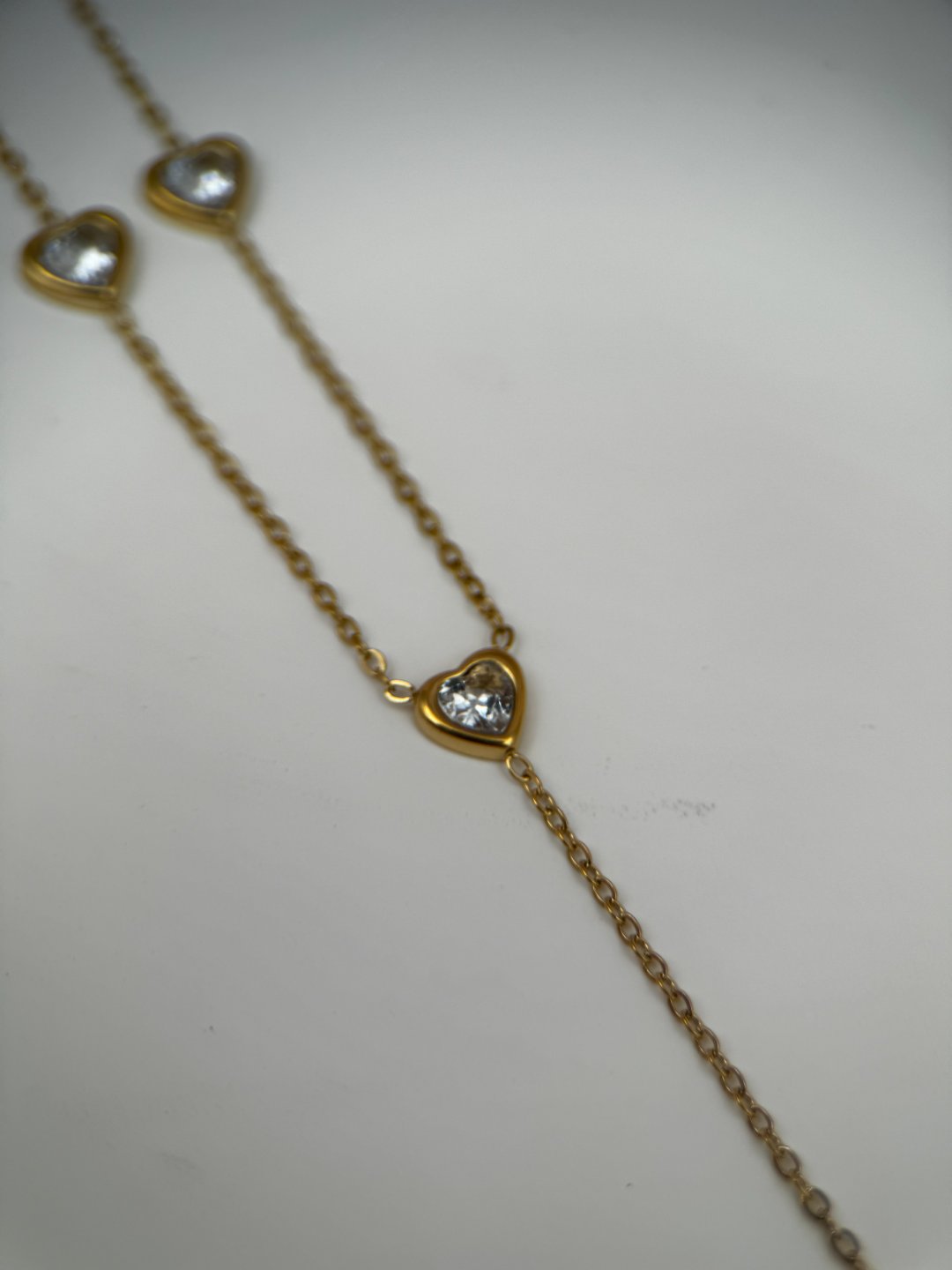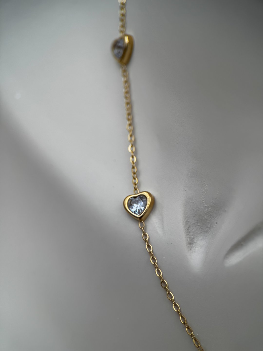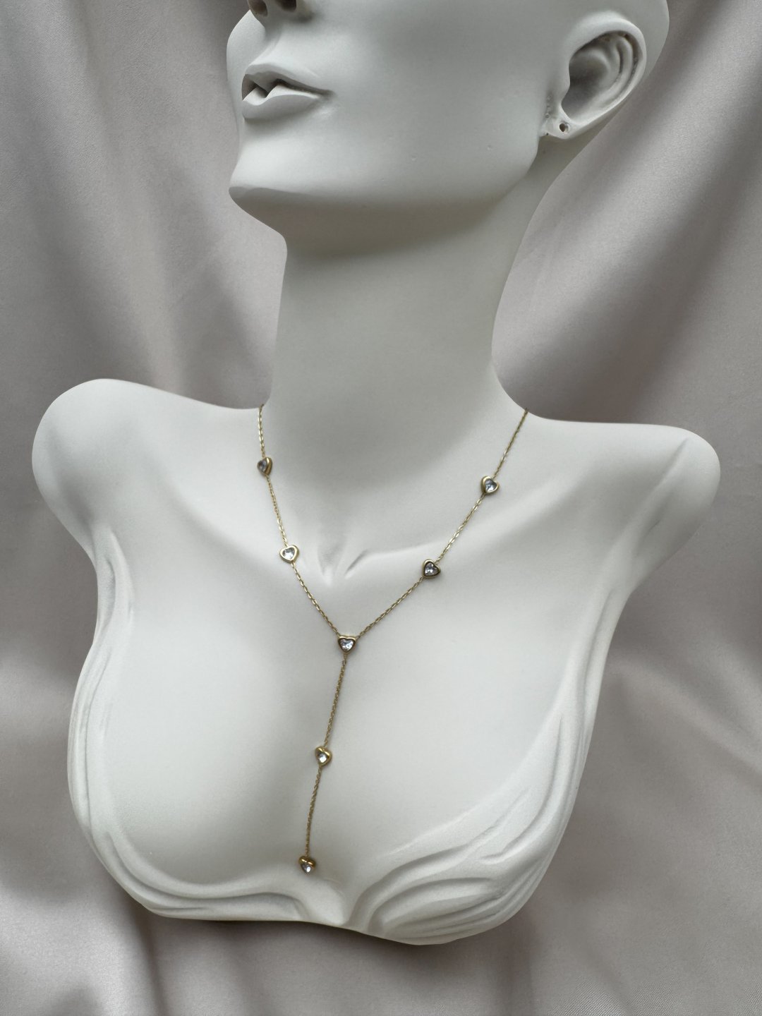 LUSEDA’nın zarafetle tasarladığı bu kalp model taşlı kolye, romantik detayları ve modern formu bir araya getiriyor. Altın tonlu zinciri ve her biri özenle işlenmiş zirkon taş kalp motifleriyle ışığı zarifçe yansıtır. Kararmaz çelik yapısı sayesinde uzun ömürlü kullanım sunarken, cilt dostu yapısıyla konforlu bir takma deneyimi sağlar.