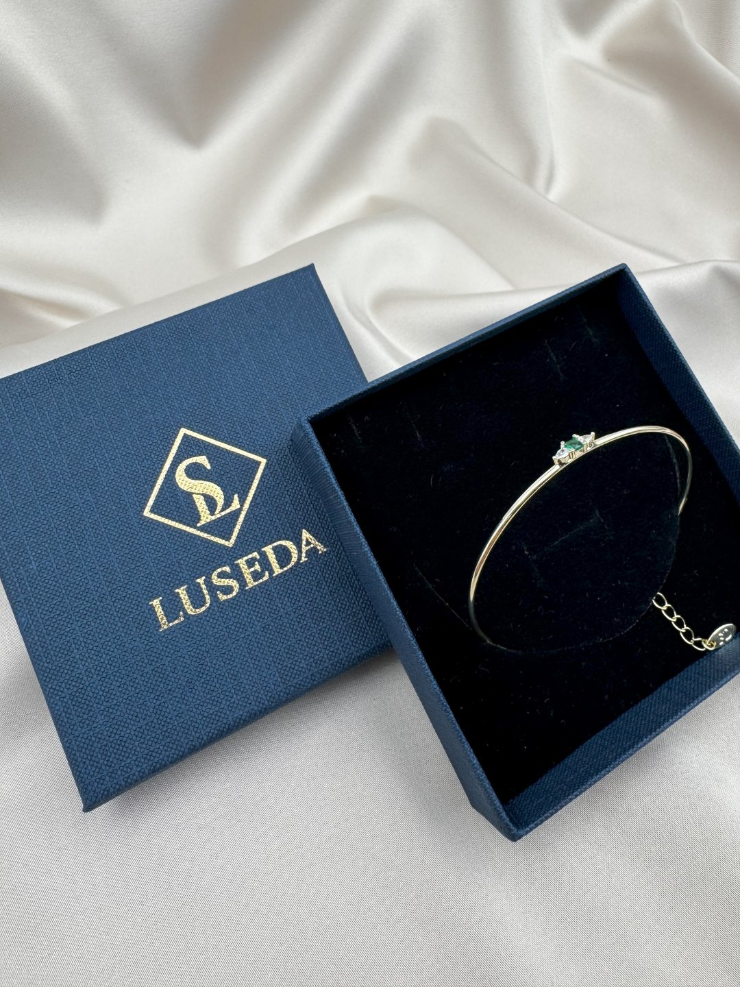 LUSEDA’nın zarif dokunuşuyla tasarlanan bu yeşil taş detaylı gold bileklik, minimal şıklığın modern bir yansımasıdır. Göz alıcı yeşil taş detayıyla bileğinizde sofistike bir ışıltı yaratır. Kararmaz gold kaplama yüzeyiyle uzun süreli kullanım sunar. Günlük kombinlerden özel davetlere kadar her stile uyum sağlayan bu bileklik, sade ama dikkat çekici tarzıyla zamansız bir parça arayanlar için mükemmel bir seçimdir.