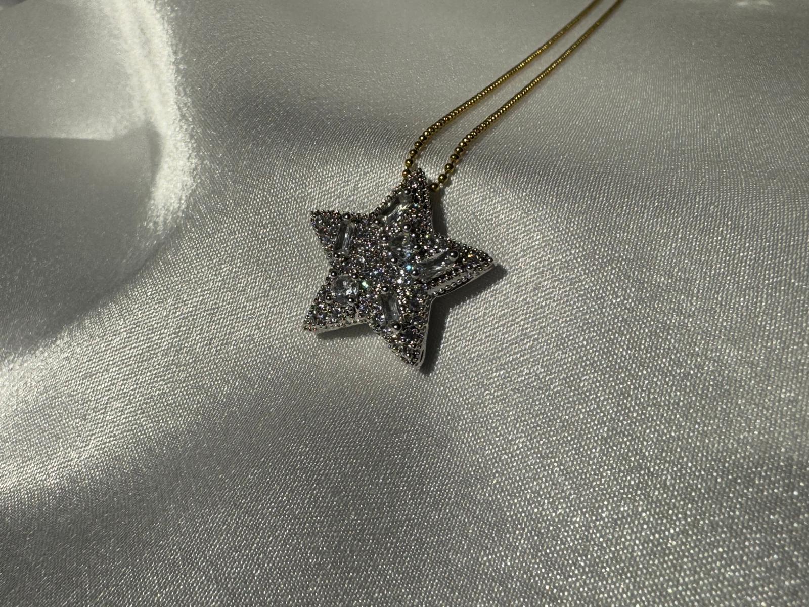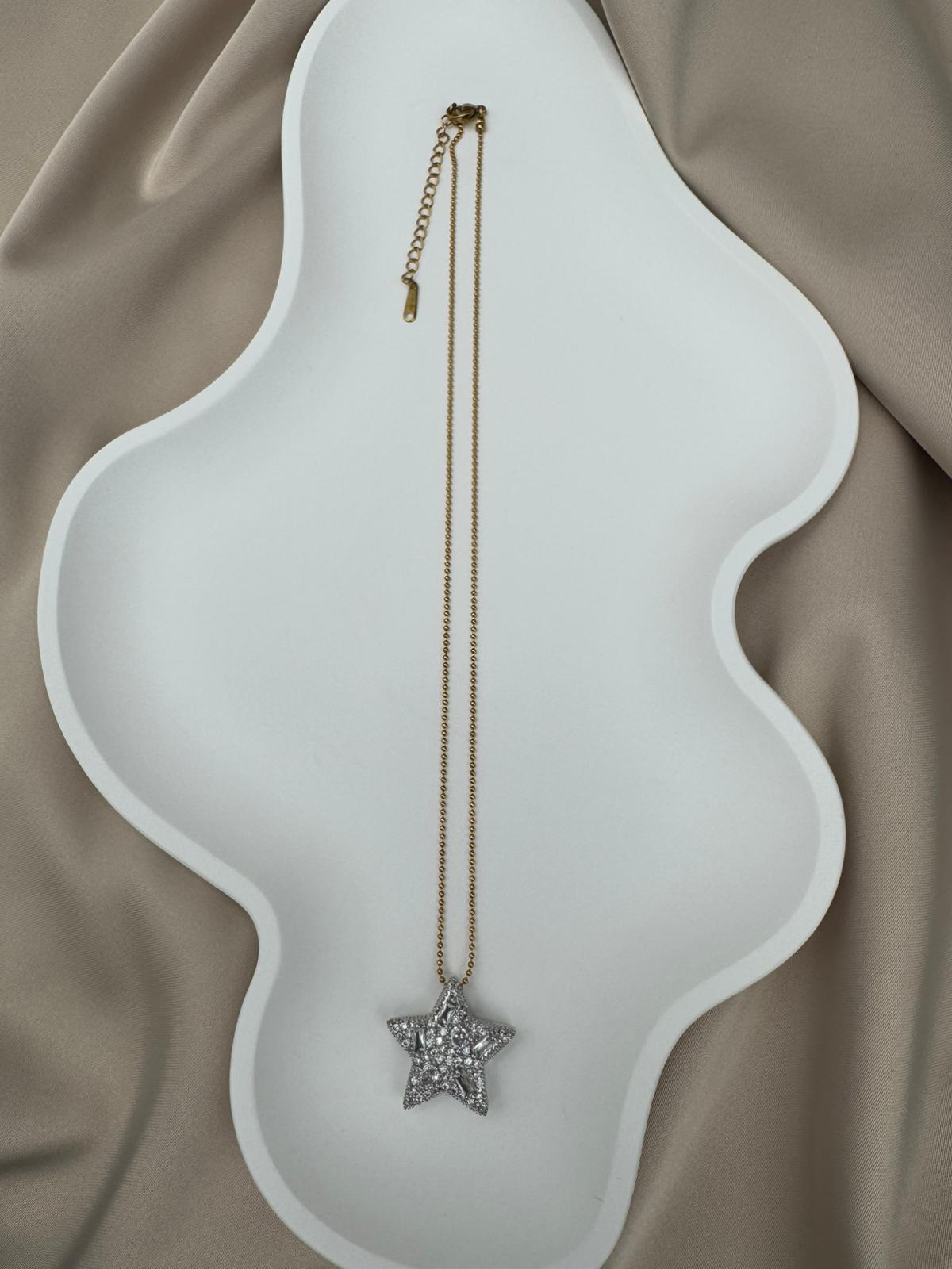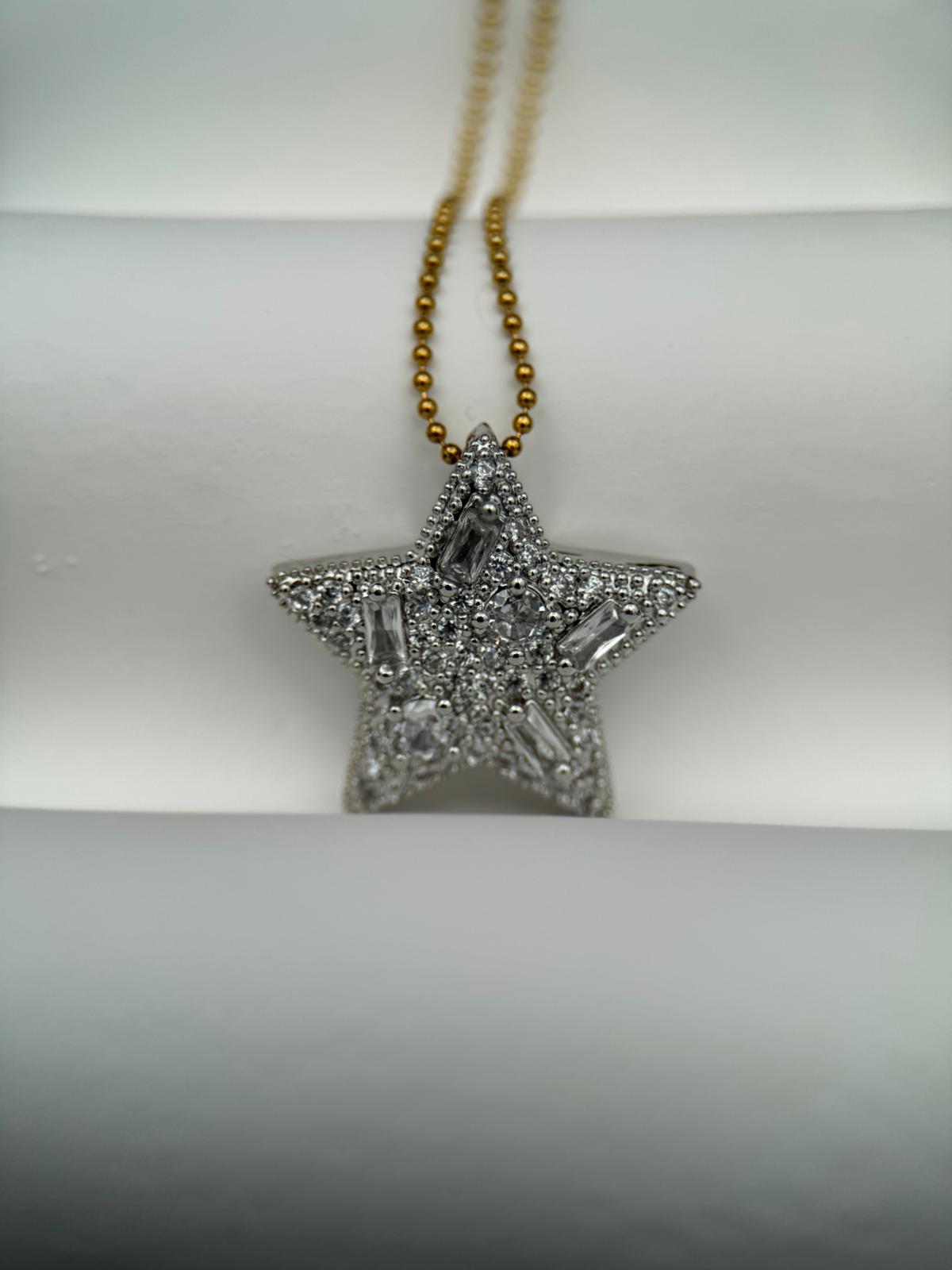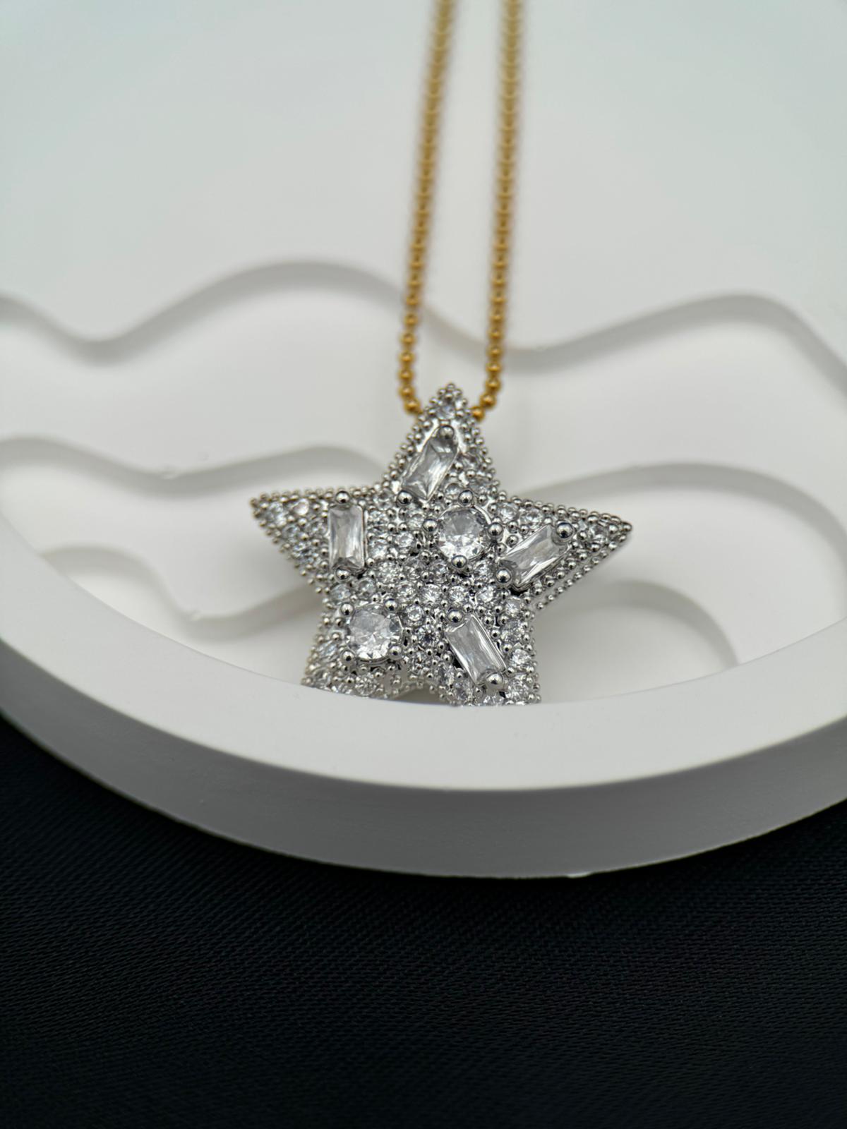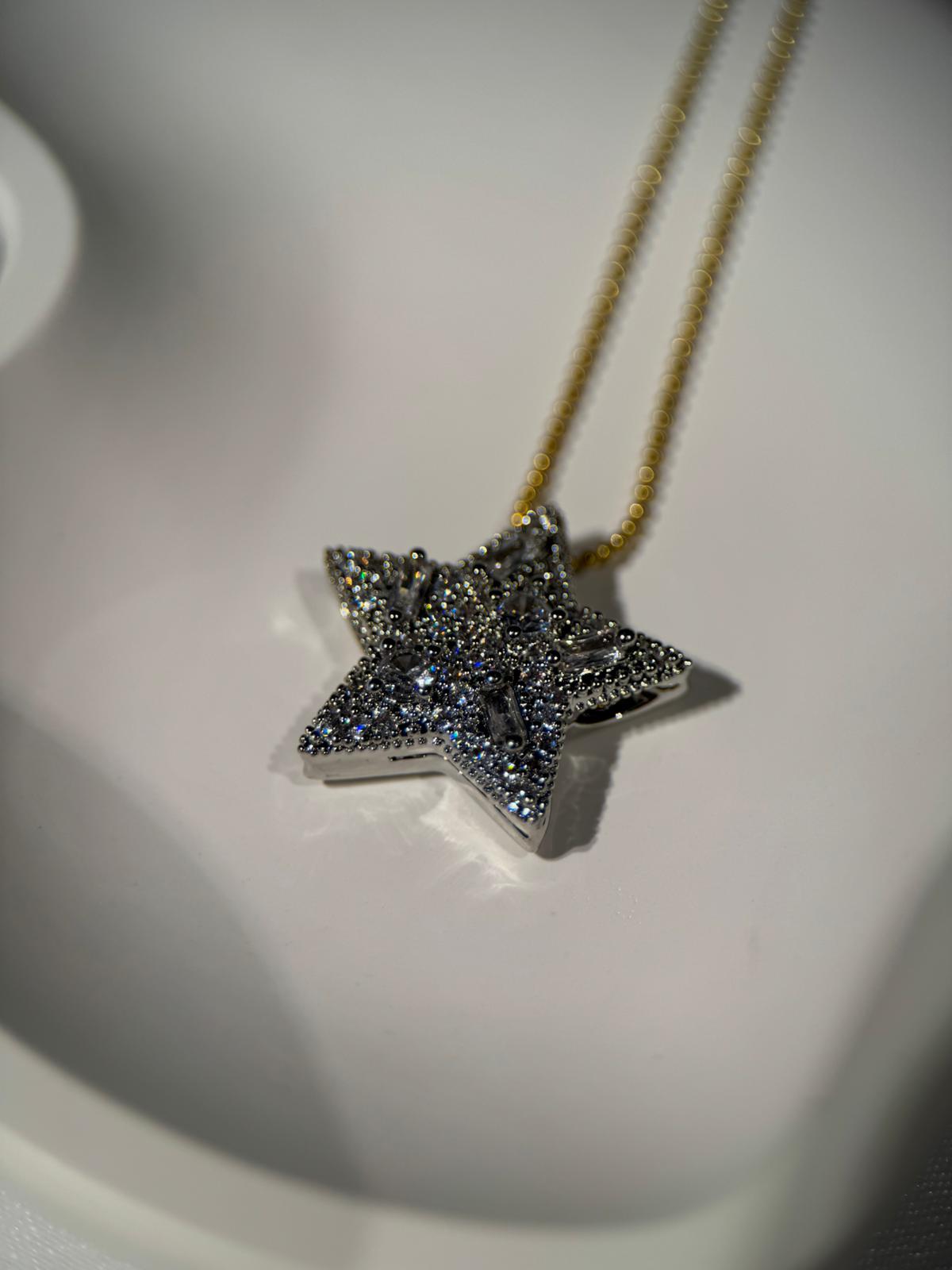 Gösterişli ve zarif tasarımıyla öne çıkan bu yıldız motifli gümüş gold kolye, parlak taş detaylarıyla ışıl ışıl bir görünüm sunar. Yüksek kaliteli paslanmaz çelikten üretilmiş olup kararmaz özelliği sayesinde uzun yıllar ilk günkü parlaklığını korur. Gold zinciriyle modern bir şıklık katan bu özel kolye, ayarlanabilir yapısı sayesinde farklı boylarda rahatça kullanılabilir. Günlük kombinlerde zarif bir dokunuş sağlarken, özel davetlerde göz alıcı bir tamamlayıcı olarak öne çıkar. Dayanıklı ve uzun ömürlü yapısıyla sevdiklerinize hediye etmek için de şık ve anlamlı bir seçimdir.