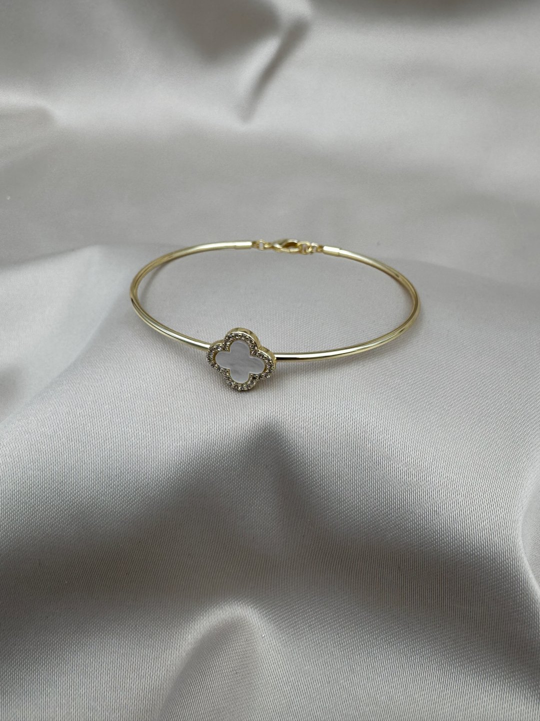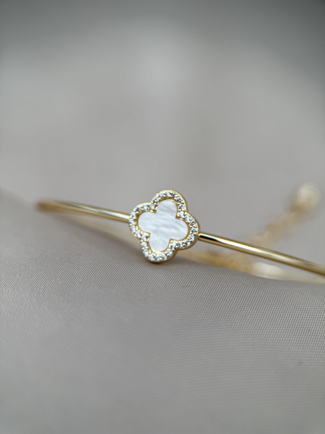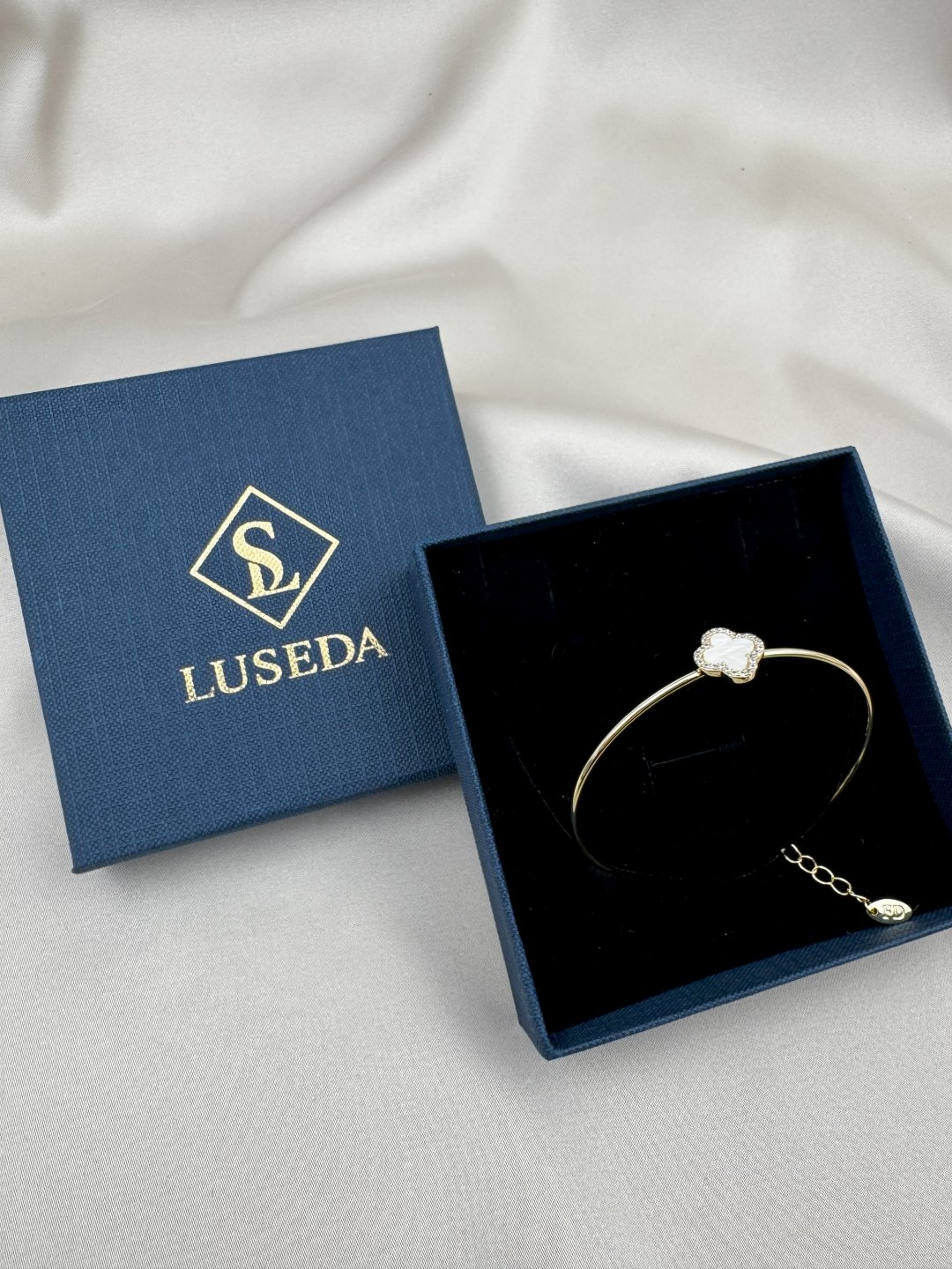 LUSEDA’nın zarif tasarım anlayışıyla hazırlanan bu özel bileklik, yonca figürüyle şans ve zarafeti bir araya getirir. Ortasında yer alan inci beyazı sedef taş ve çevresindeki ışıltılı detaylar, bileğinizde sade ama etkileyici bir ışıltı oluşturur. Altın renkli ince formu sayesinde hem günlük kombinlerde hem özel günlerde kolayca kullanılabilir. Kararmaz yapısı sayesinde uzun ömürlü kullanım sunar ve ciltle uyumlu formu sayesinde gün boyu rahatlıkla takılabilir. LUSEDA kalitesiyle üretilen bu zarif bileklik, kendiniz ya da sevdikleriniz için şık bir hediye seçeneğidir.