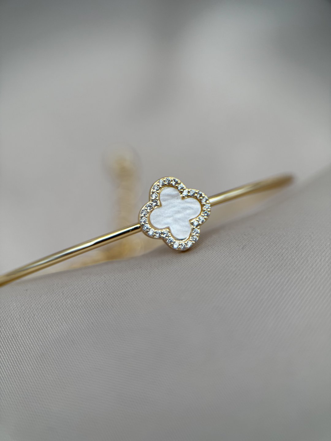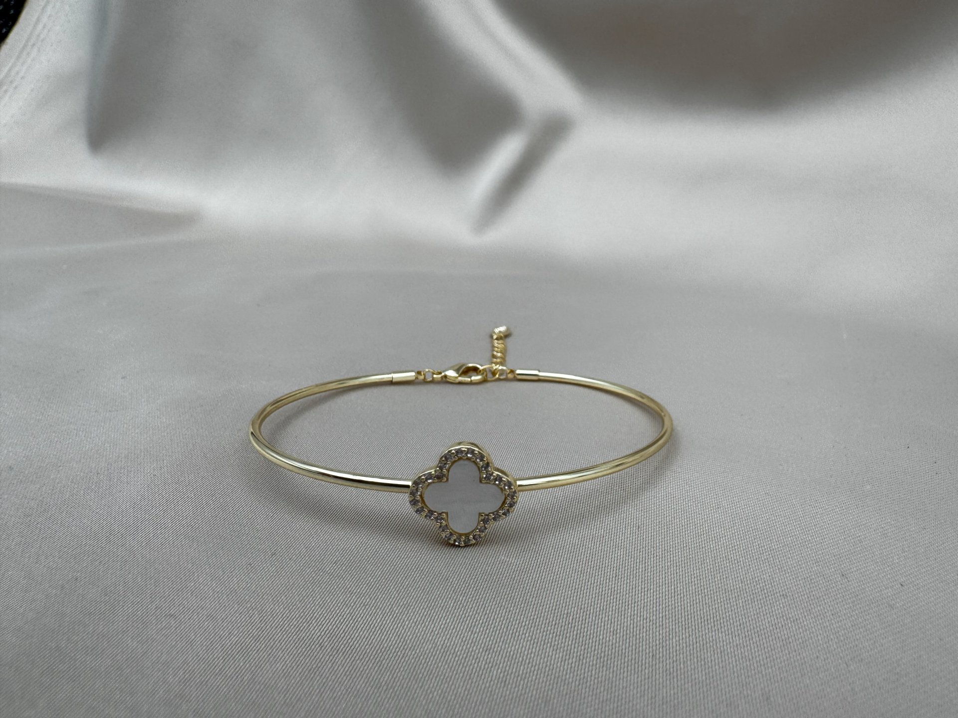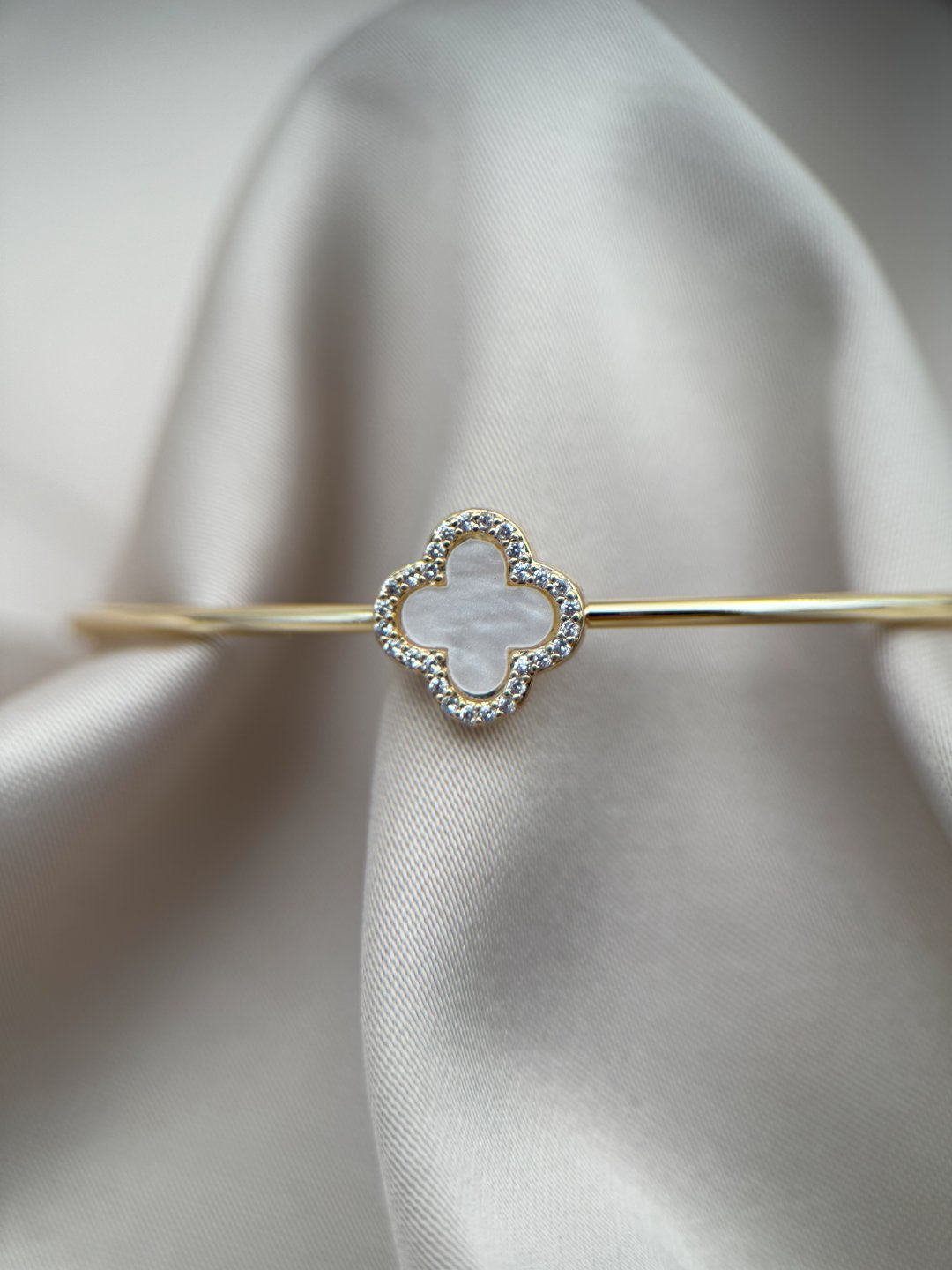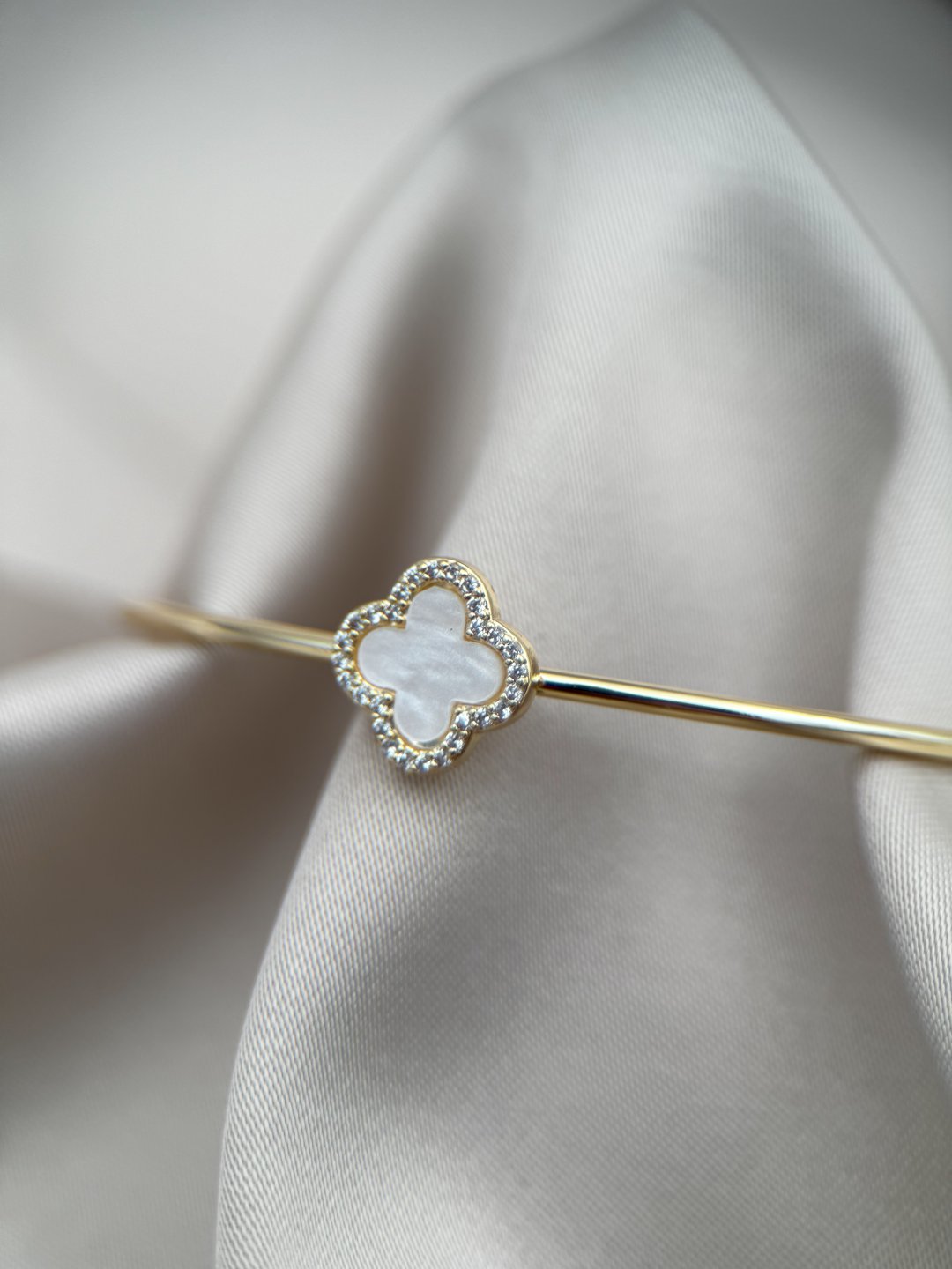 LUSEDA’nın zarif tasarım anlayışıyla hazırlanan bu özel bileklik, yonca figürüyle şans ve zarafeti bir araya getirir. Ortasında yer alan inci beyazı sedef taş ve çevresindeki ışıltılı detaylar, bileğinizde sade ama etkileyici bir ışıltı oluşturur. Altın renkli ince formu sayesinde hem günlük kombinlerde hem özel günlerde kolayca kullanılabilir. Kararmaz yapısı sayesinde uzun ömürlü kullanım sunar ve ciltle uyumlu formu sayesinde gün boyu rahatlıkla takılabilir. LUSEDA kalitesiyle üretilen bu zarif bileklik, kendiniz ya da sevdikleriniz için şık bir hediye seçeneğidir.
