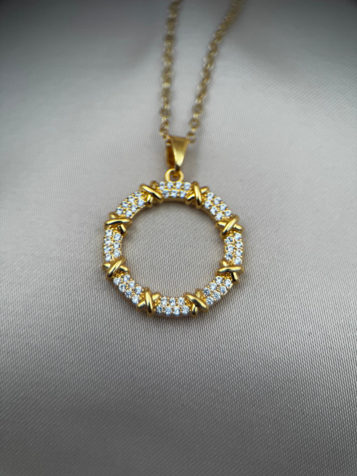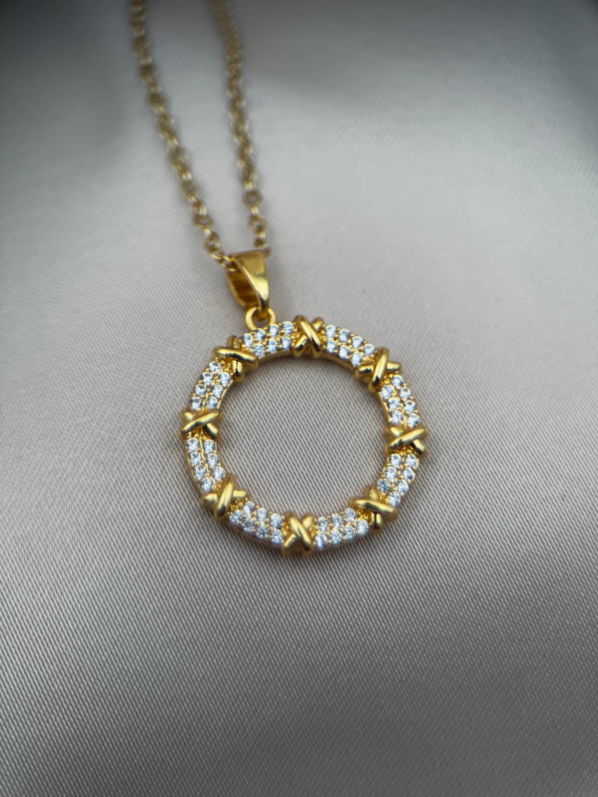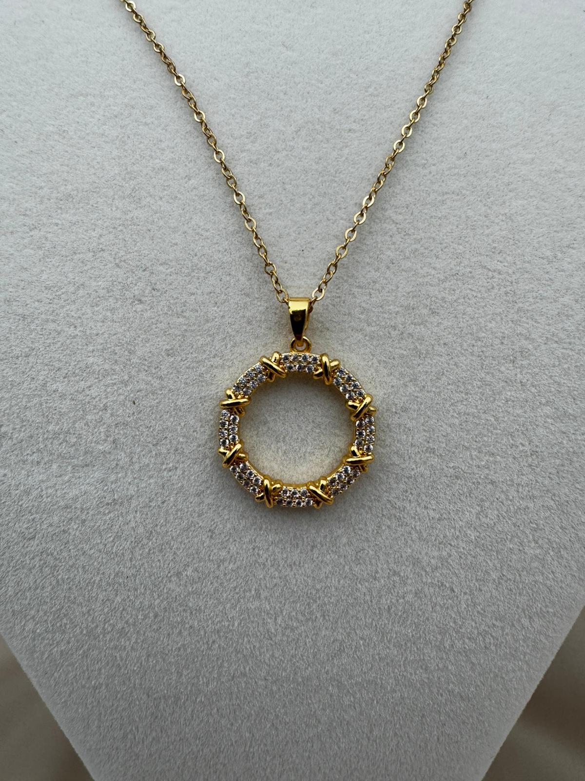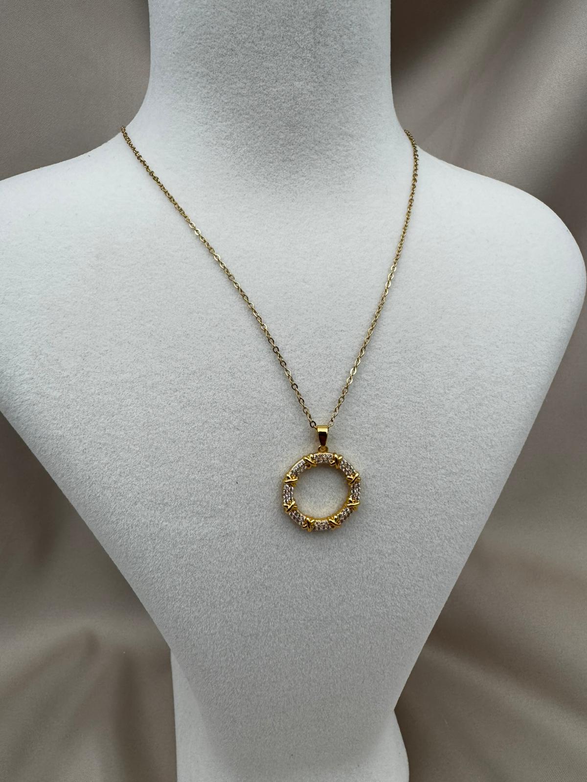 LUSEDA taşlı halka form kolye, modern ve klasik çizgileri buluşturan özel tasarımıyla öne çıkıyor. Kararmaz çelik üzerine altın kaplama detayları ve parlak taş işlemeleriyle uzun ömürlü bir ışıltı sunar. Günlük kombinlerden özel davetlere kadar her anınıza sofistike bir dokunuş katar. Hafif yapısıyla konforlu kullanım sağlayan bu kolye, stilinize elegan bir tamamlayıcı olacak.
