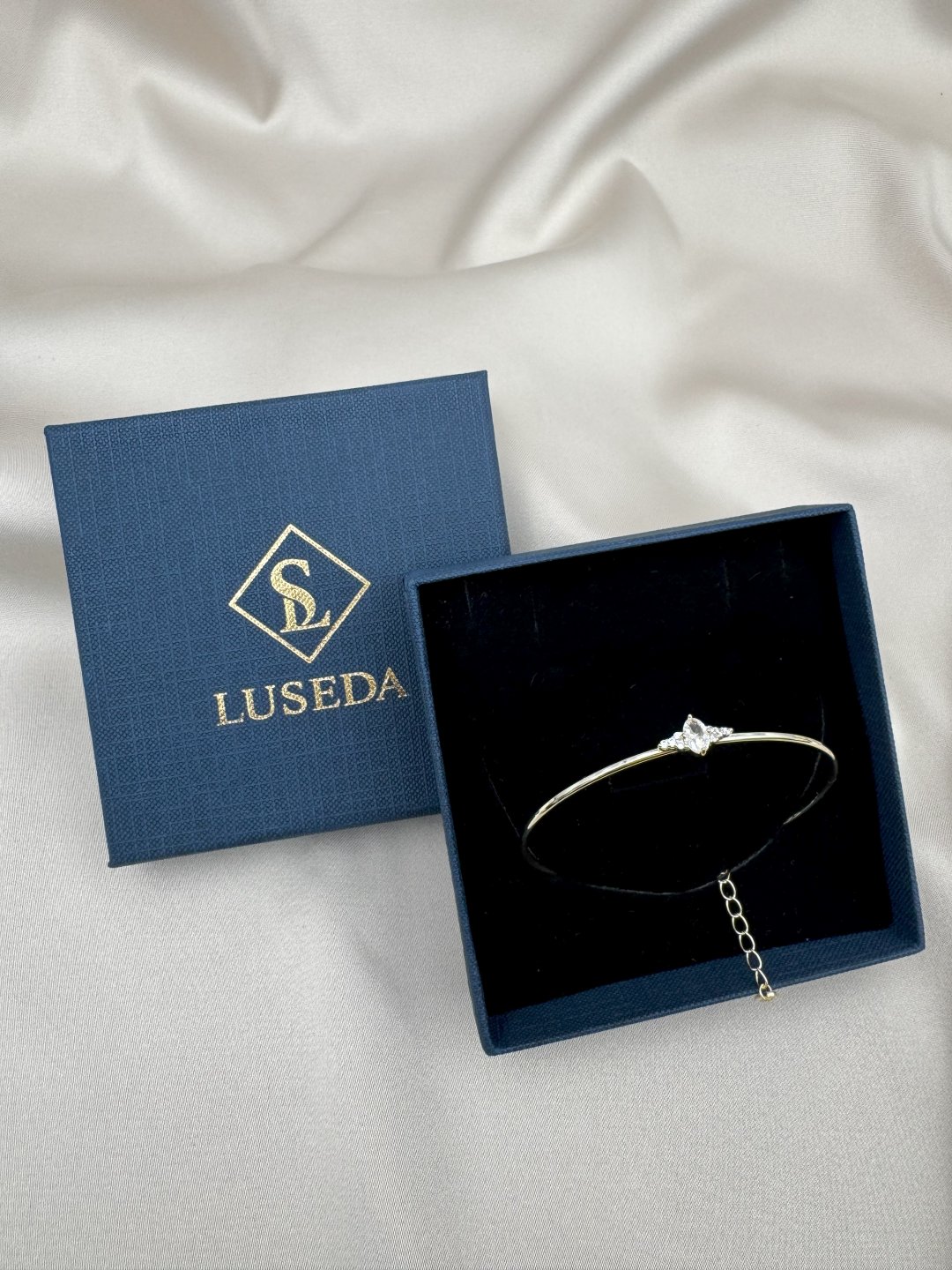 LUSEDA’nın zarafet ve minimalizmi bir araya getirdiği bu tek taş detaylı gold bileklik, sade ama etkileyici duruşuyla modern kadınların favorisi olmaya aday. Işıltılı taş detayı, bileğinizde dikkat çekici bir parlaklık oluştururken gold kaplaması sayesinde uzun ömürlü kullanım sunar. Kararmaz yapısı ve hafif formuyla günlük kullanıma da özel gün şıklığına da mükemmel uyum sağlar. Şıklığını sade detaylarda bulanlar için tasarlandı.