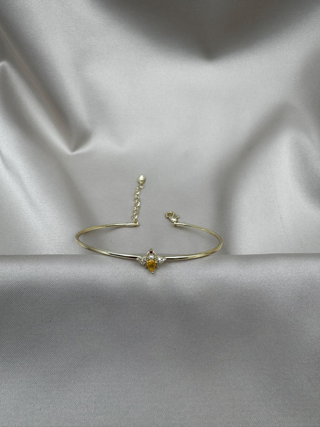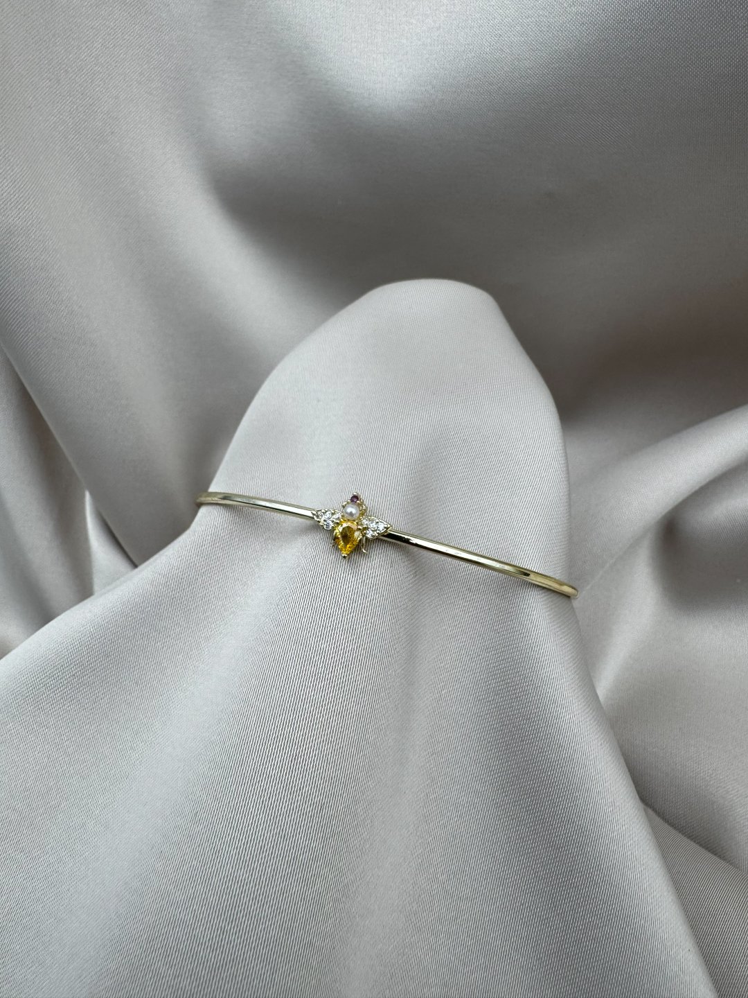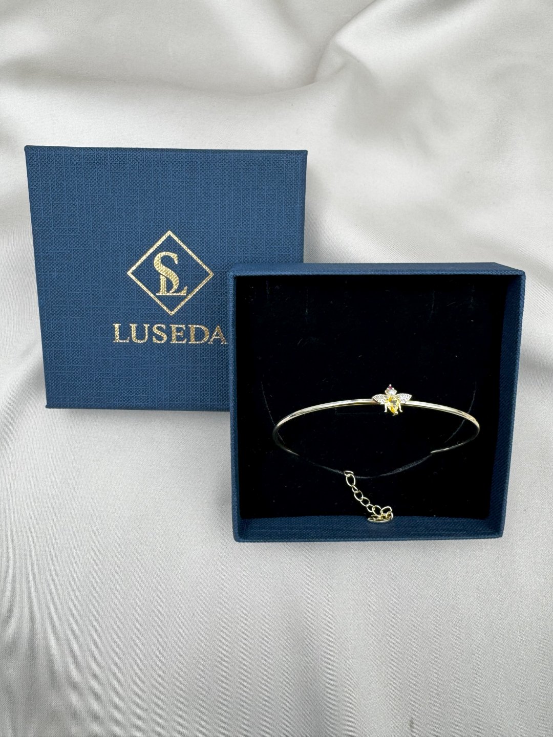LUSEDA’nın özel tasarımı olan bu arı figürlü bileklik, doğanın zarafetini modern şıklıkla birleştiriyor. Altın renk kararmaz çelik yapısı, uzun ömürlü kullanım ve parlak görünüm sunarken; zirkon taşlar ve inci detayları bileğe göz alıcı bir ışıltı katıyor. İnce formu sayesinde zarif bir duruş sergiler ve günlük kullanımdan özel davetlere kadar her kombine uyum sağlar. Parfüm, su ve nem gibi dış etkenlere karşı dayanıklı yapısıyla uzun süreli parlaklığını korur.