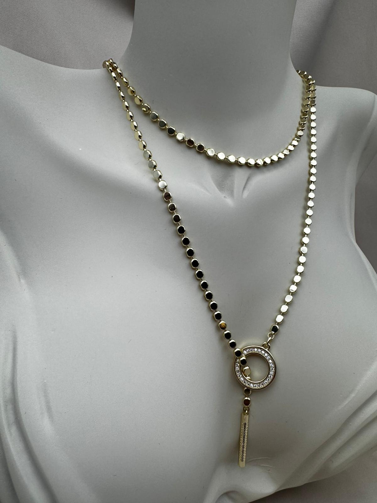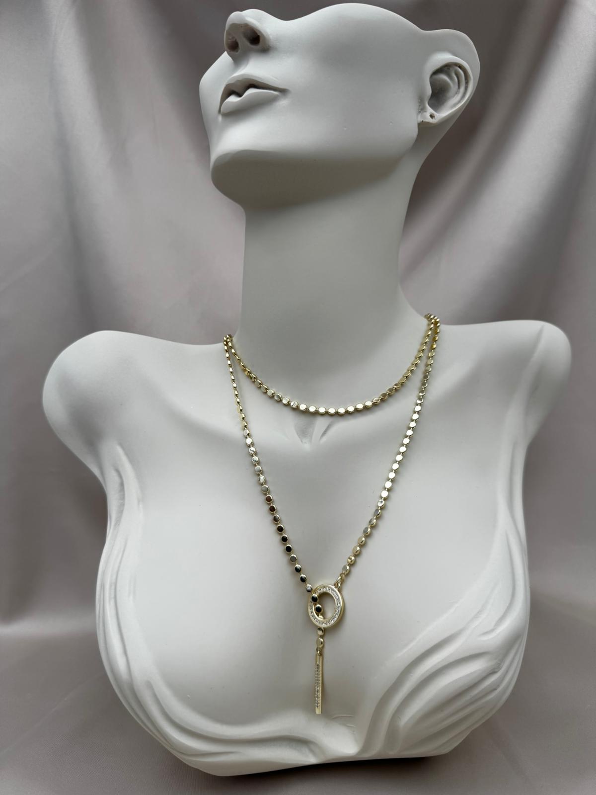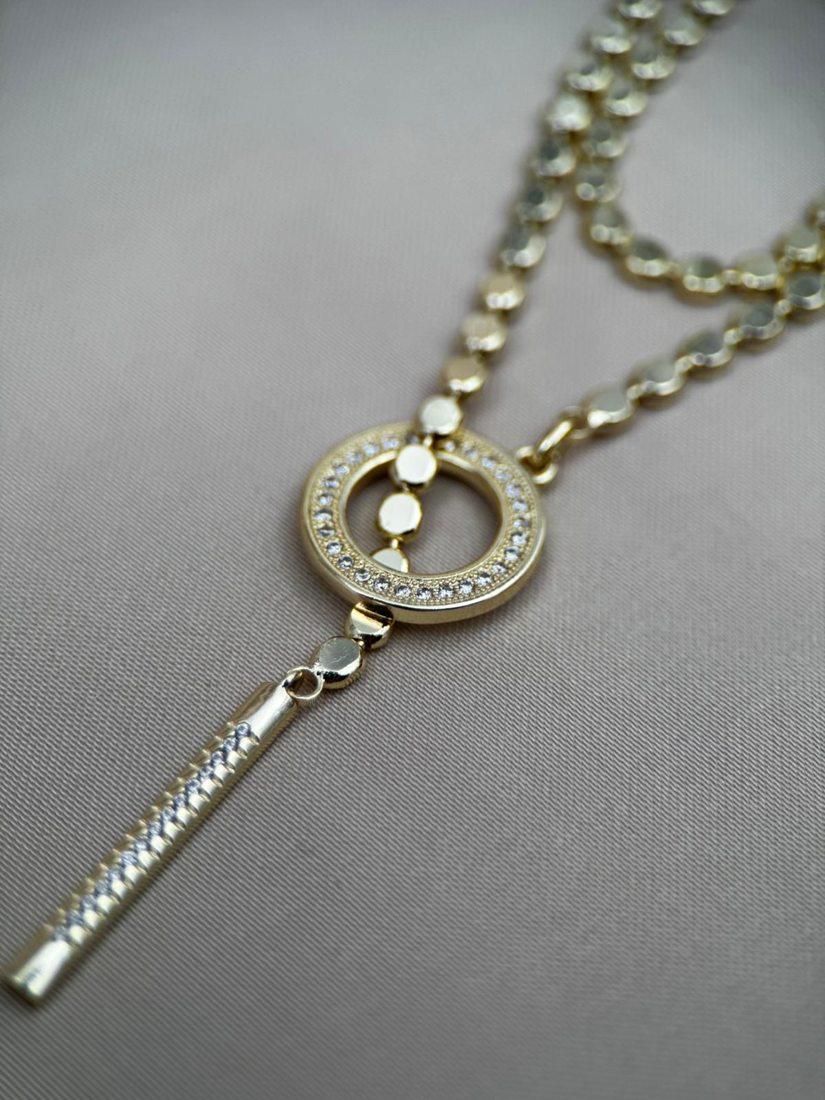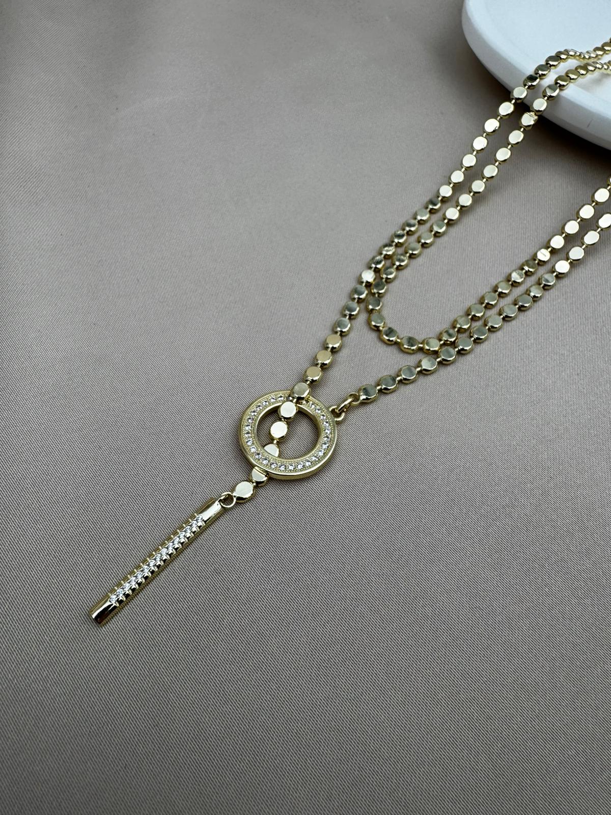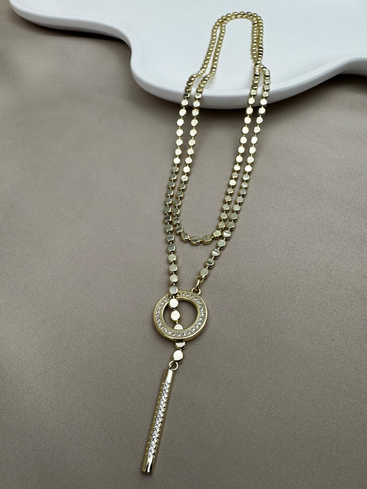 LUSEDA’nın zarif çizgileriyle tasarlanan bu iki katlı altın renk kolye, modern kadınların şıklık anlayışını yansıtır. Üst katmanda minimal daire zincir detayı, alt katmanda ise parlak zirkon taşlarla süslenmiş daire ve çubuk formu yer alır. Bu özel tasarım, sade ama dikkat çekici görünümüyle hem günlük kullanımda hem özel davetlerde tarzınızı tamamlar. Kararmaz çelik yapısı sayesinde uzun ömürlüdür; su, parfüm ve ter gibi dış etkenlere karşı dayanıklıdır. LUSEDA kalitesiyle hazırlanan bu kolye, her kombine zarif bir ışıltı katar ve şık kutu ambalajıyla hediye olarak da mükemmel bir tercihtir.